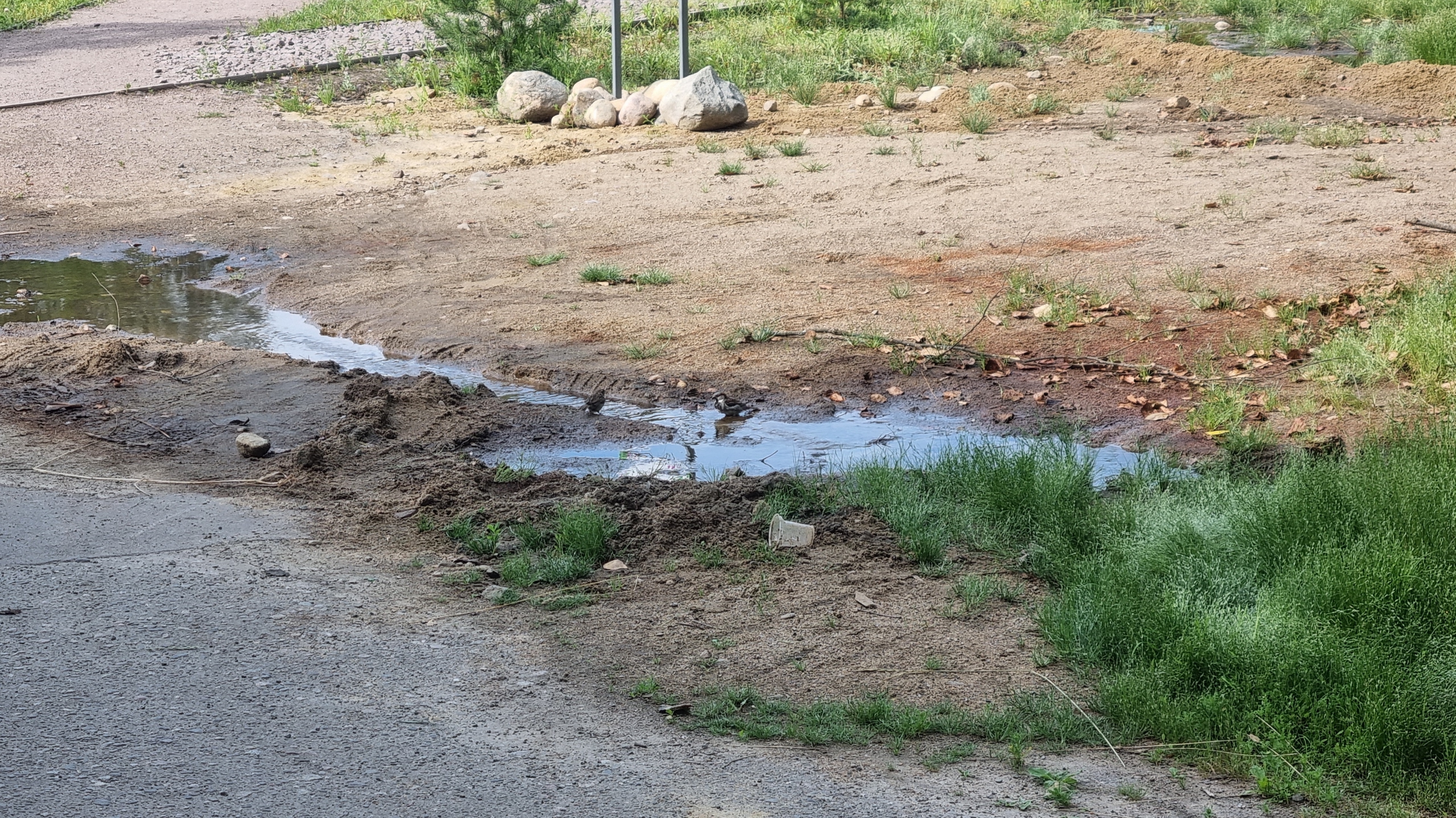 Ранее Сад памяти несколько месяцев заливало из-за коммунальной аварии на водопроводе. Неизвестный местный житель лопатой отвел от аллеи мощный ручей.
