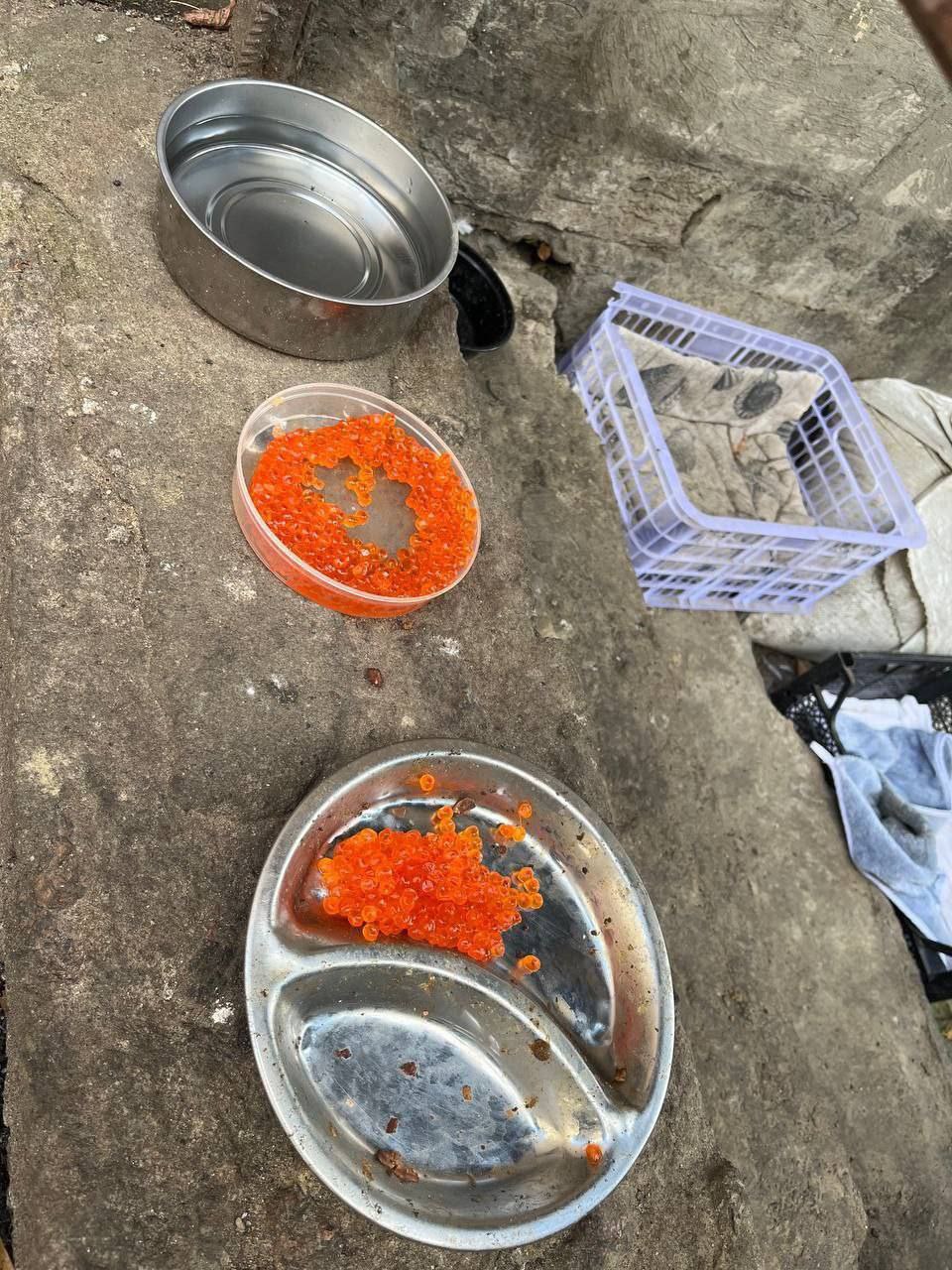 Очевидцы отметили, что хвостатые с удовольствием уплетали угощение. Натуральная ли была икра или имитированная — никто не знает. Но такое лакомство явно пришлось по вкусу уличным полосатикам.