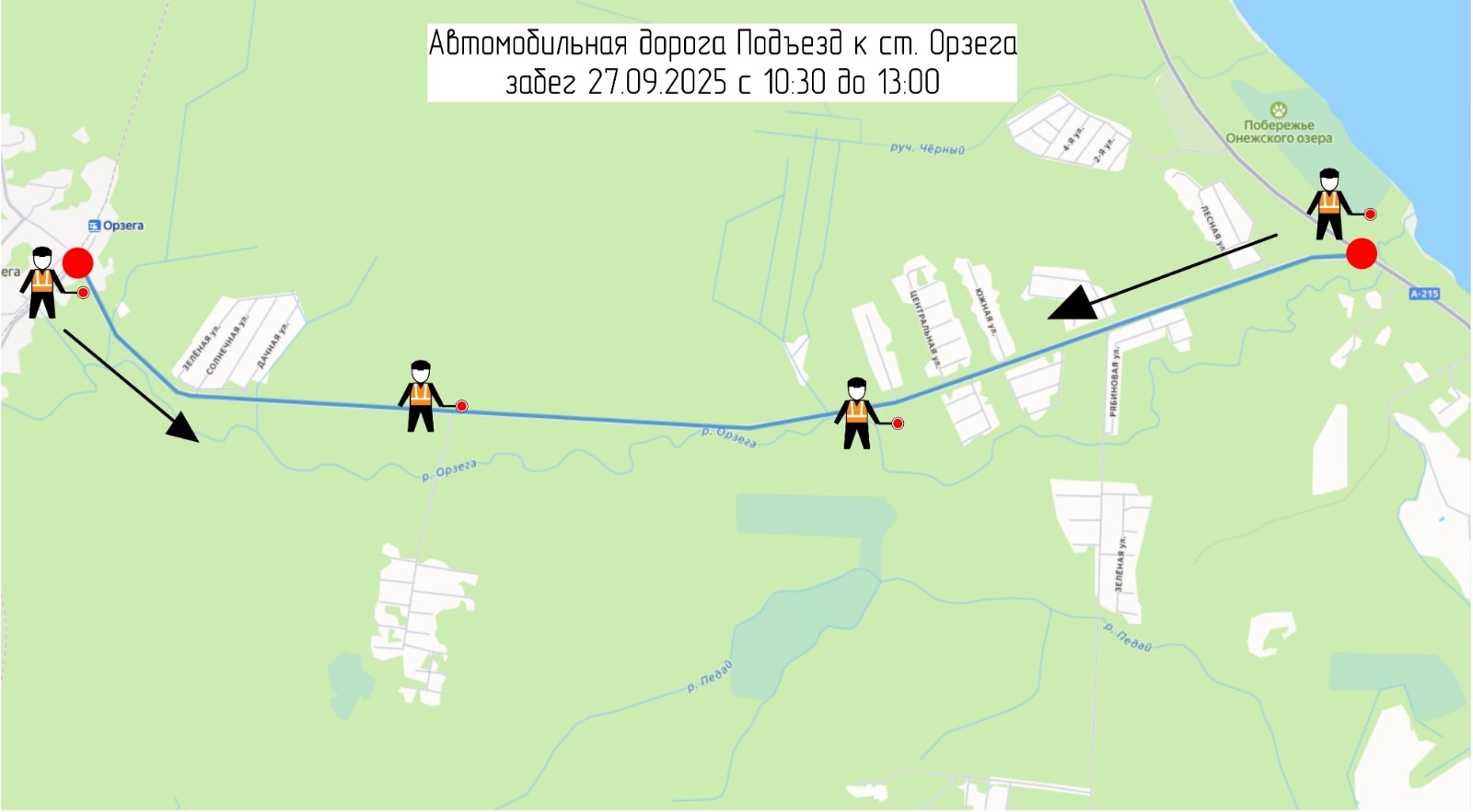 В субботу, 27 сентября, будет закрыто движение автомобилей на дороге «Подъезд к ст. Орзега».