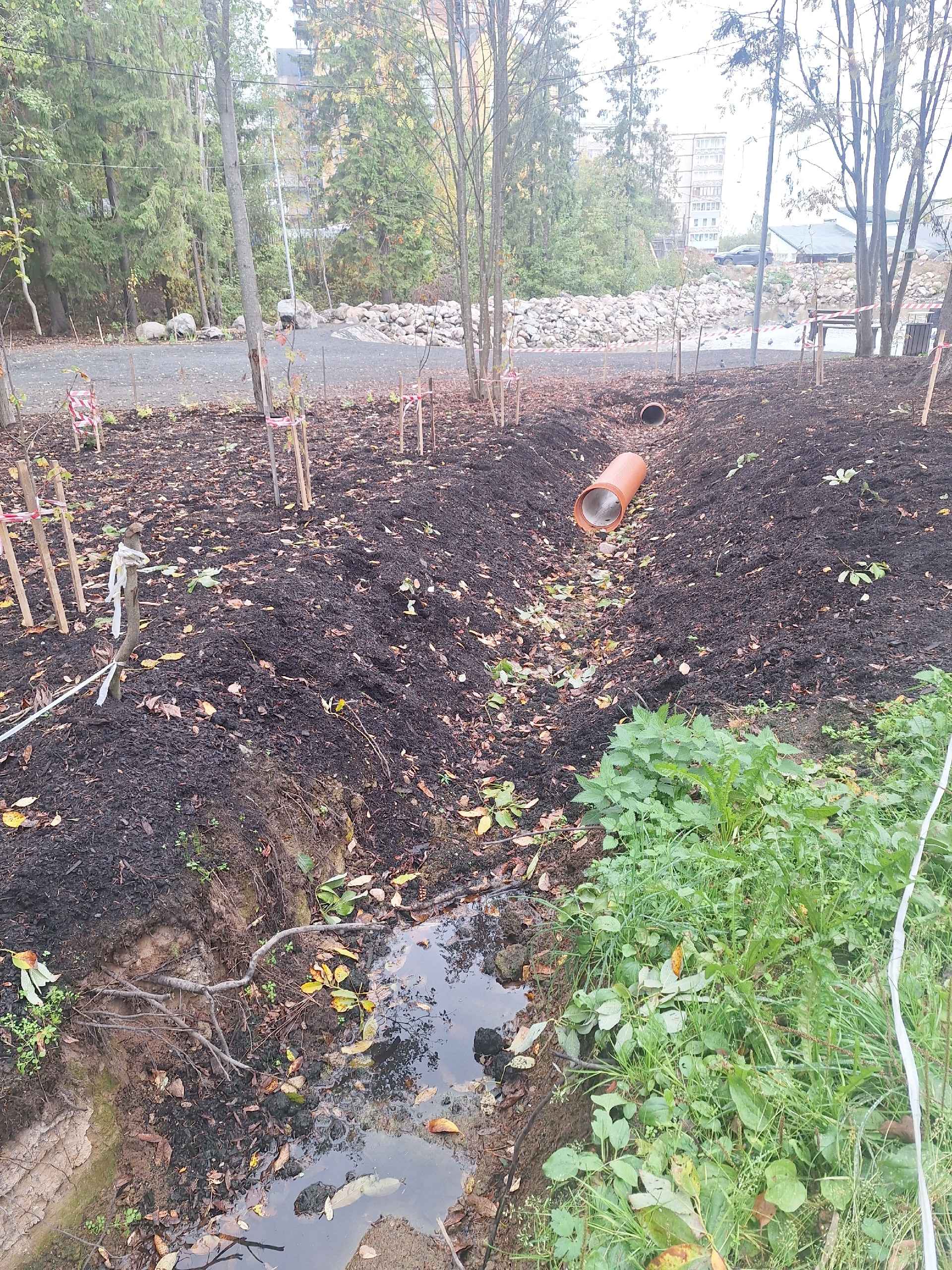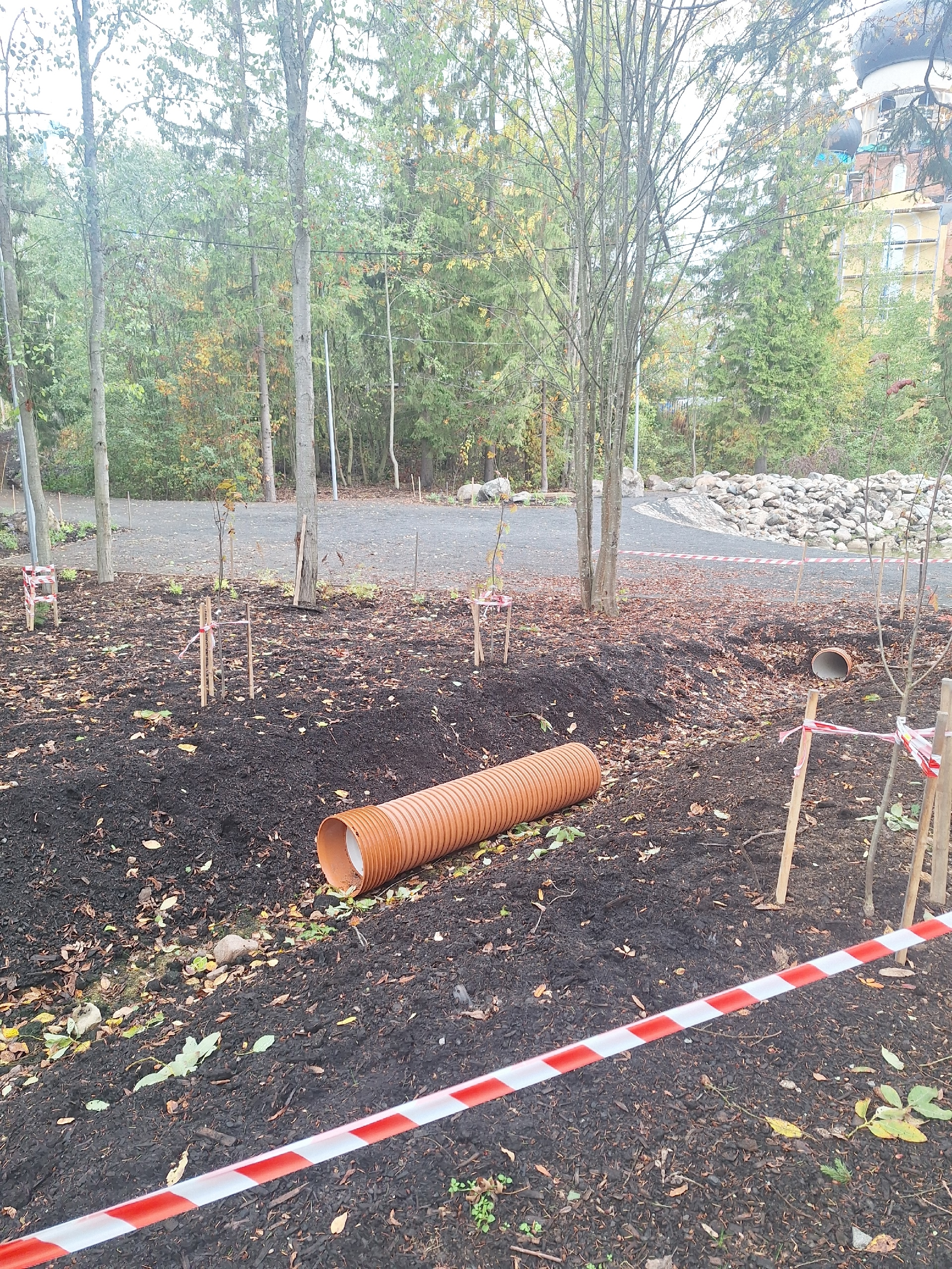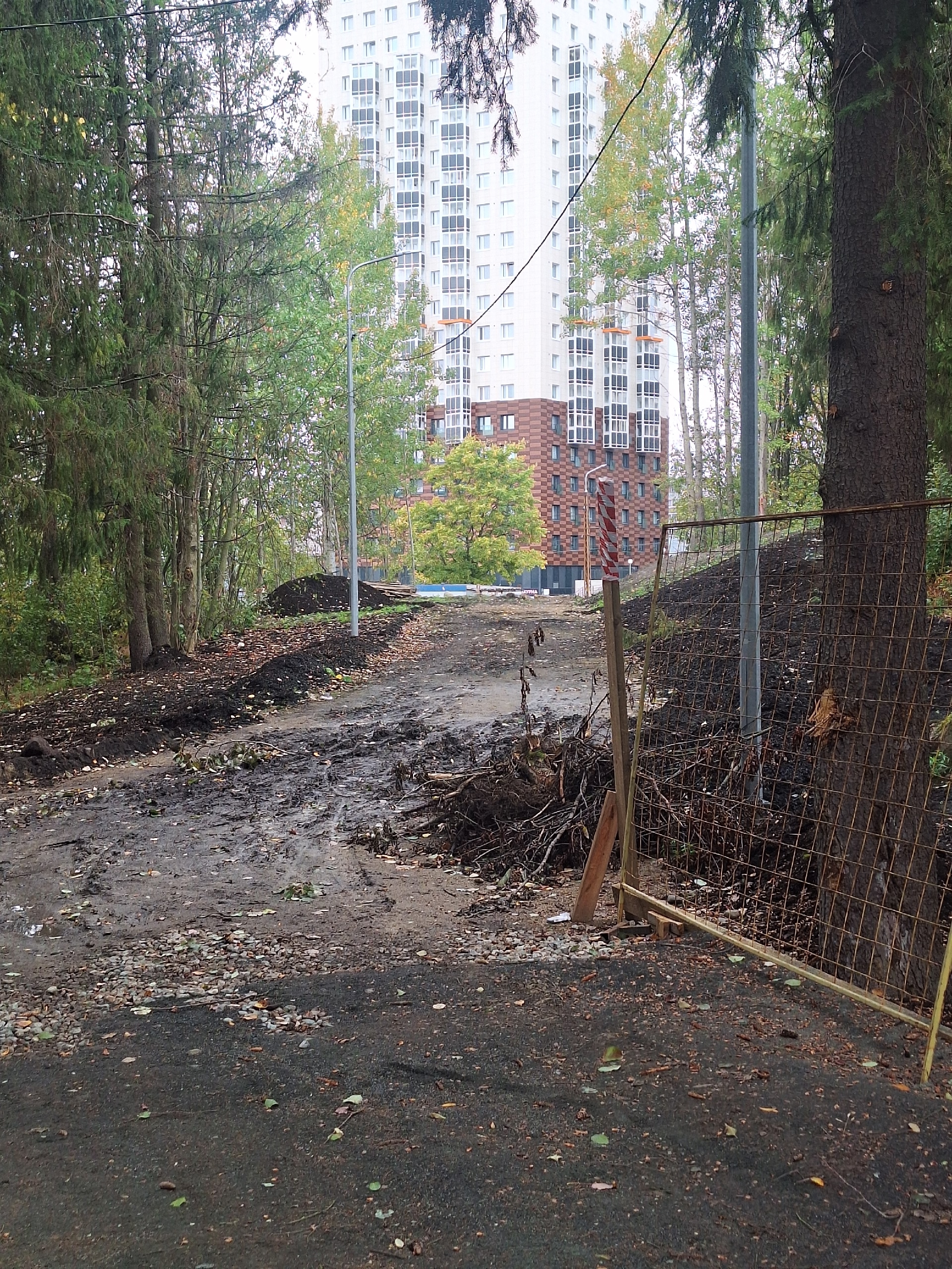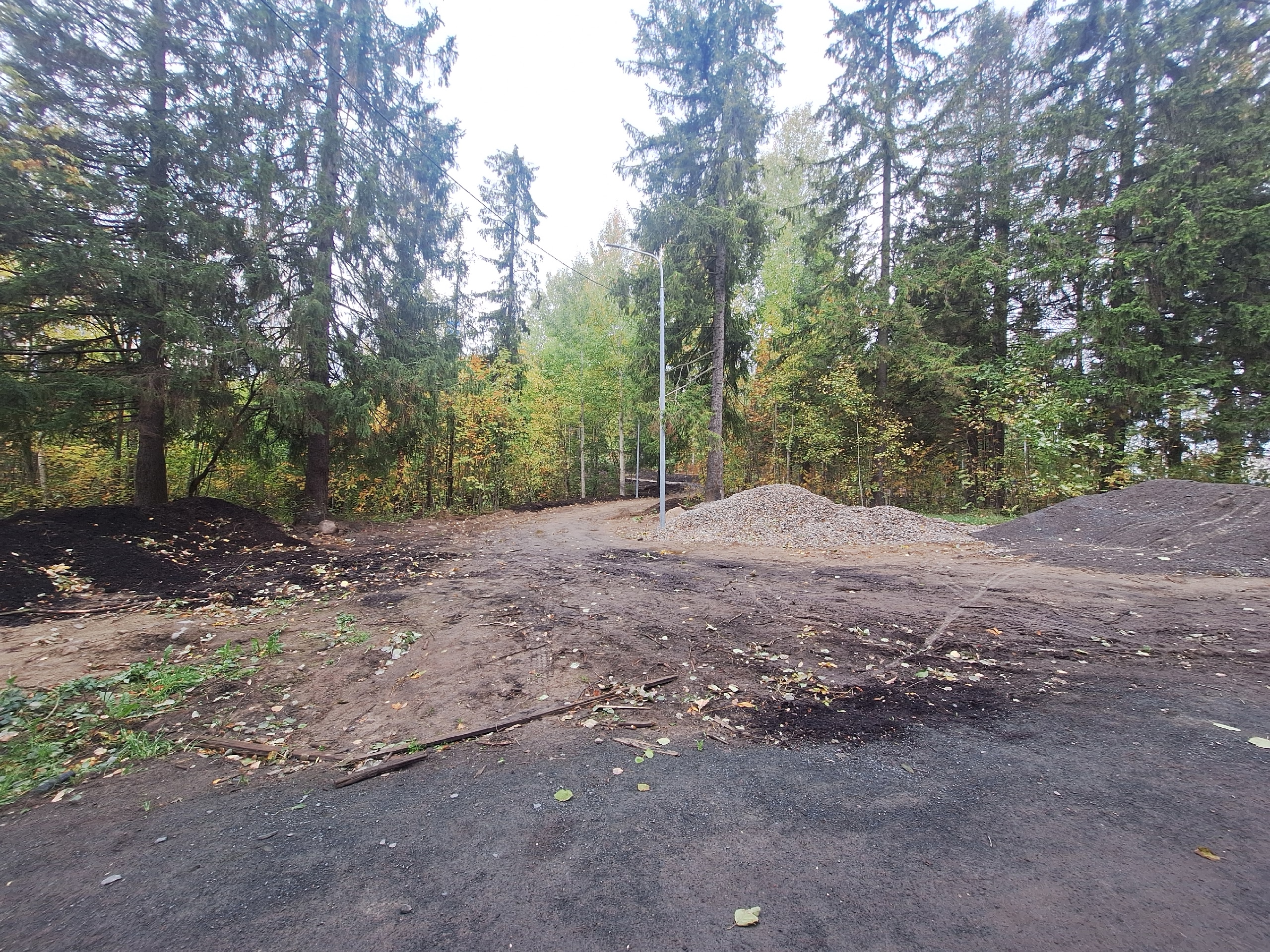 Жительница возмущена состоянием благоустройства в Беличьем парке. Она пишет, что работы брошены. Повсюду остались земля, доски и грязь. Валяются оставшиеся металлоконструкции.