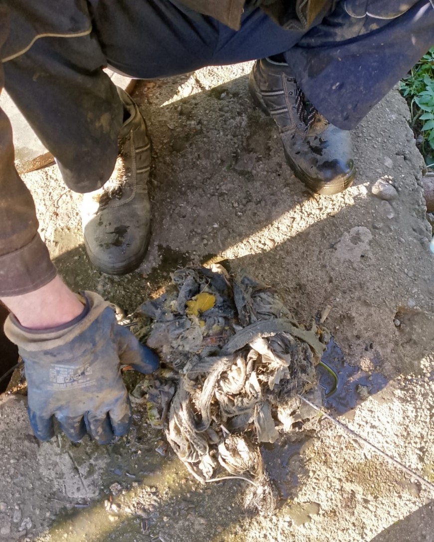 Сегодня утром работники ВКУ устраняли засор канализации у д. 13 по ул. Пролетарской в Кондопоге. Причиной стали влажные салфетки, которые не растворяются в воде и превращаются в комья, забивая канализационную систему. Об этом сообщили в паблике .