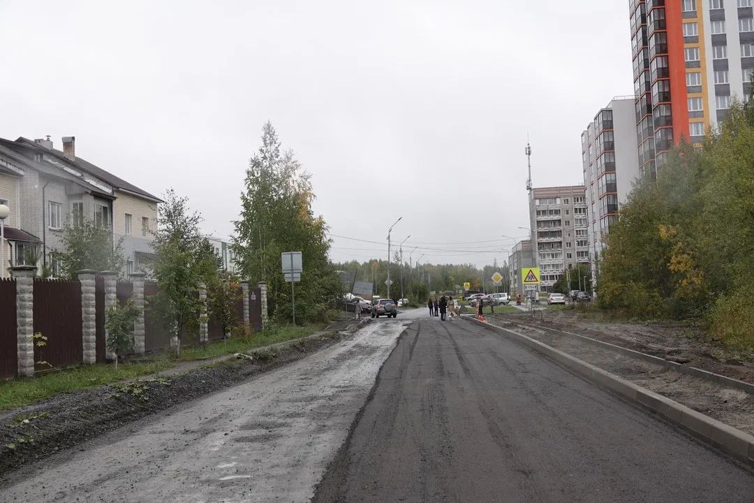 Работы велись на участке от Сиреневой до Учительской улицы — именно об этом просили жители Древлянки. Подрядчик уже уложил новый асфальт и сейчас заканчивает обустройство тротуара, которого раньше здесь не было.