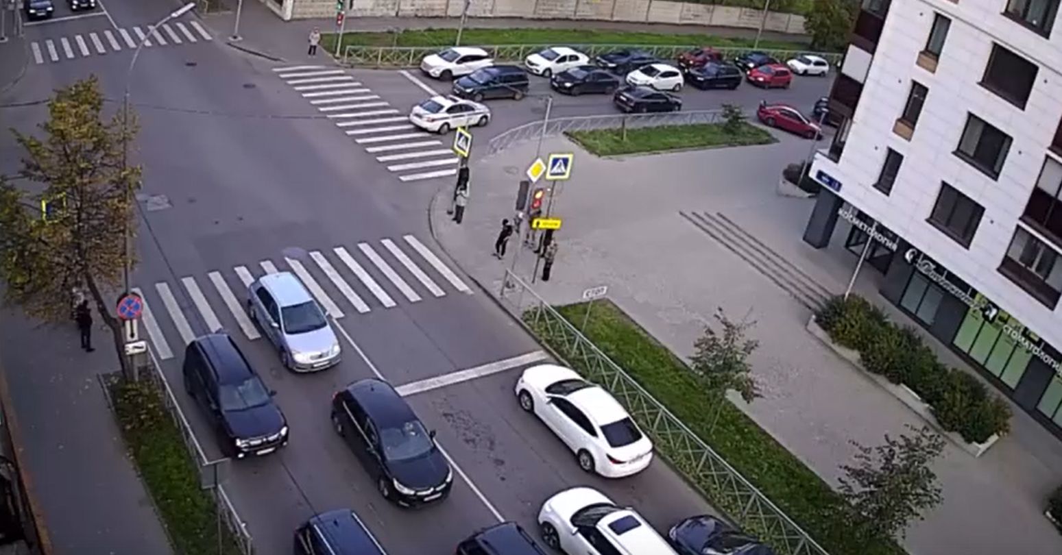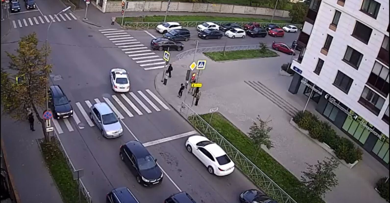 Момент нарушения попал на запись камеры уличного видеонаблюдения компании «Ситилинк». На кадрах видно, как легковой автомобиль выехал «на встречку», похоже, что водителю не хотелось стоять в пробке — на перекрестке в час пик скопились автомобили.
