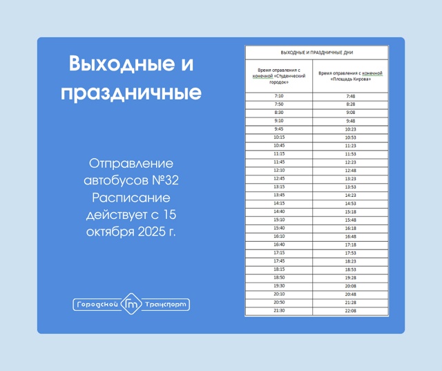 Автобусный маршрут № 32 с 15 октября свяжет Студенческий городок с Площадью Кирова в карельской столице. Об этом сообщили в пресс-службе администрации города.