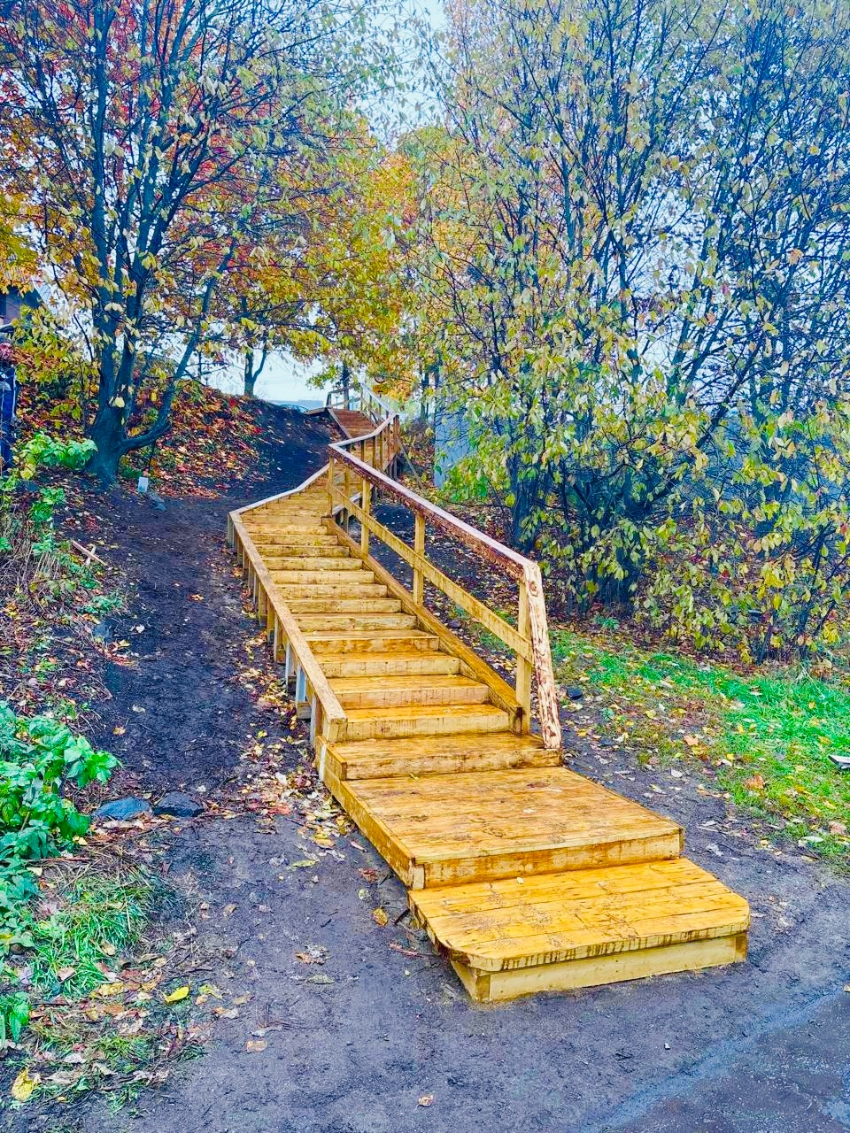 Строители соорудили удобный лестничный спуск от здания, в котором располагается Министерство строительства Карелии, к аллее Зеленая тропа, проходящей под Лобановским мостом. Об этом сообщили в Минтрансе Карелии.