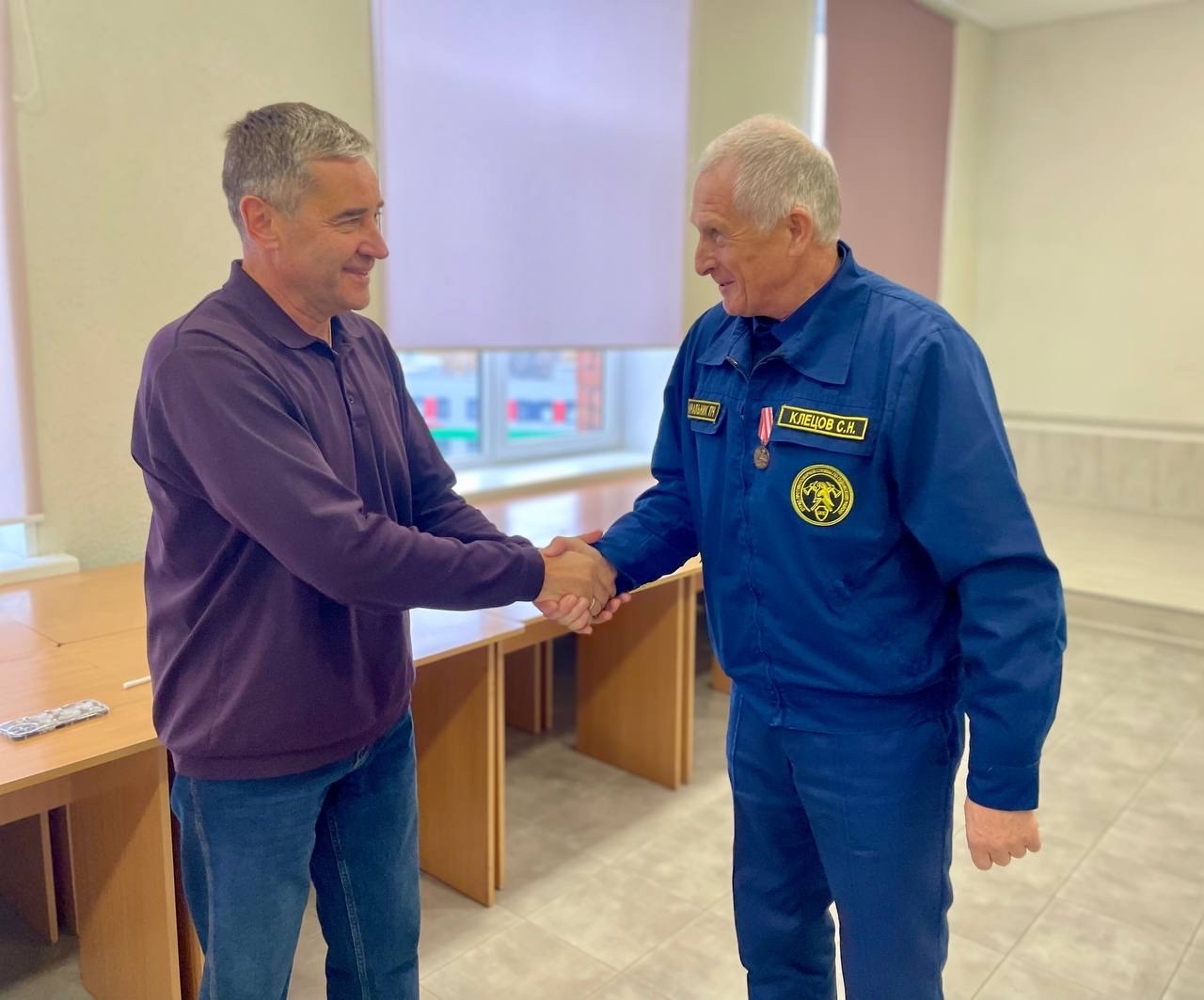 Медаль Сергею Клецову вручил глава Госкомитета Карелии по обеспечению жизнедеятельности и безопасности населения Олег Поляков. Он поблагодарил Сергея за службу, поздравил с высокой наградой и пожелал дальнейших успехов, крепкого здоровья и сухих рукавов.