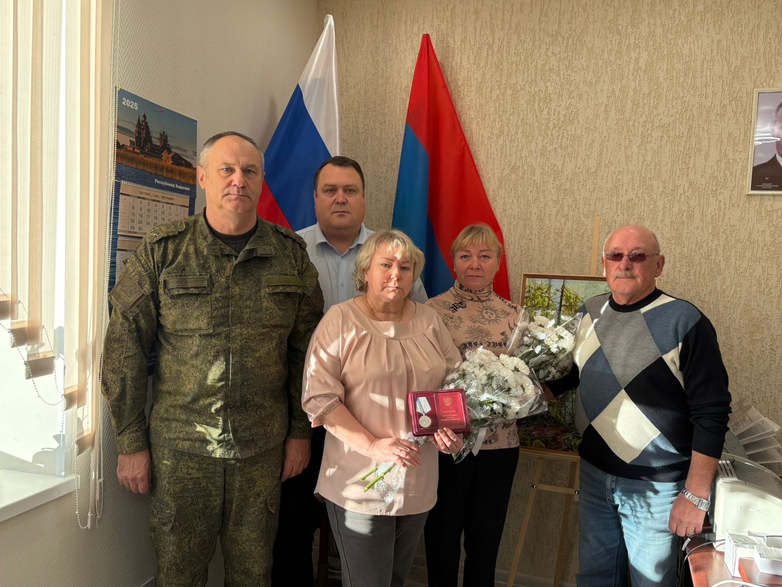 На церемонию вручения награды приехали сестры погибшего бойца Татьяна и Наталья. Военный комиссар Сортавалы и Лахденпохского района Роман Поляков зачитал указ президента России о награждении Косурова Алексея Николаевича медалью «За отвагу» посмертно.