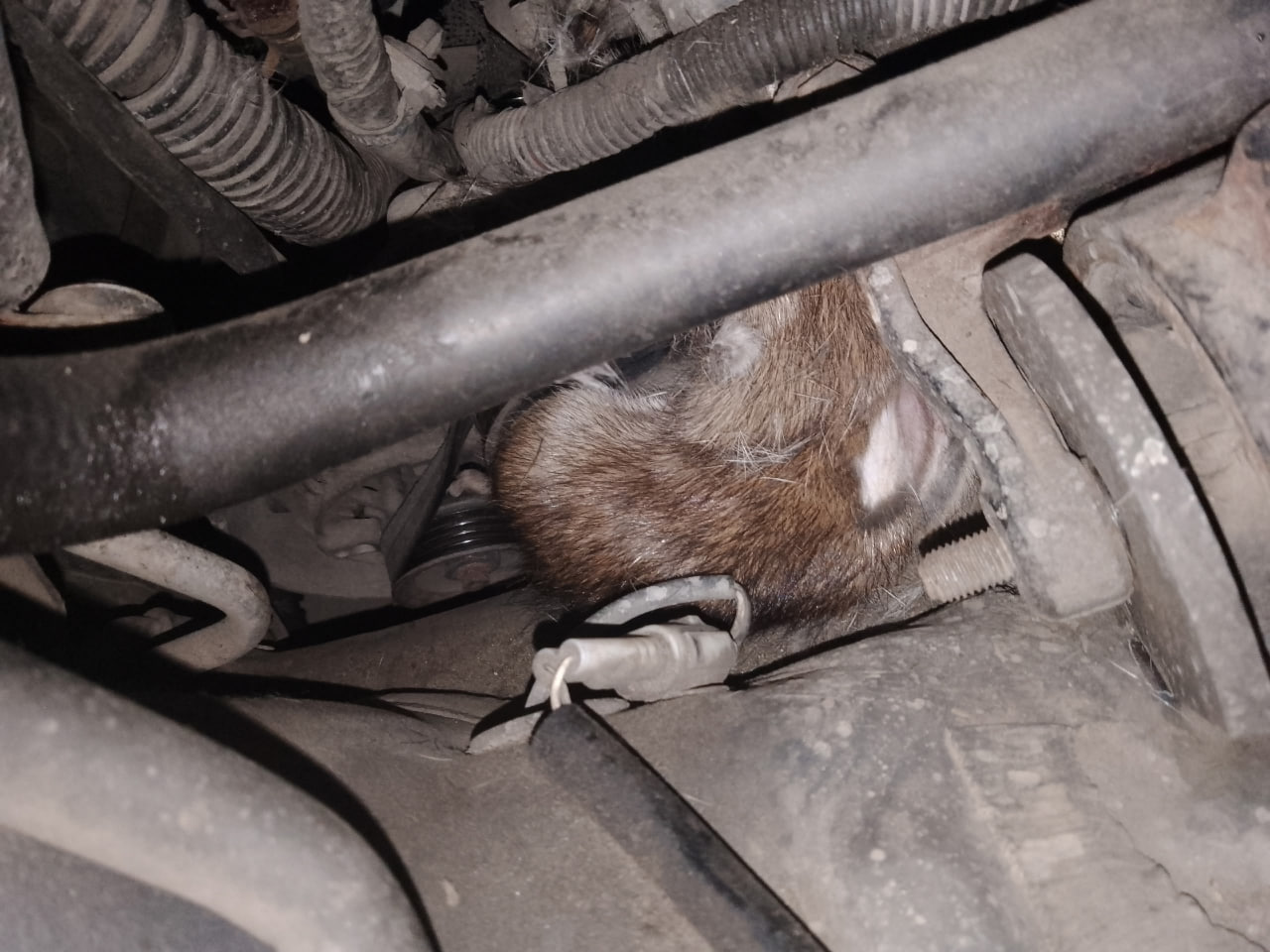 Грызун решил согреться в автомобиле жительницы карельской столице. Животное забралось под капот и устроилось на ночлег. Хозяйка машины обнаружила крысу, когда завела автомобиль. Фото (18+) опубликовали в одном из местных телеграм-каналов.