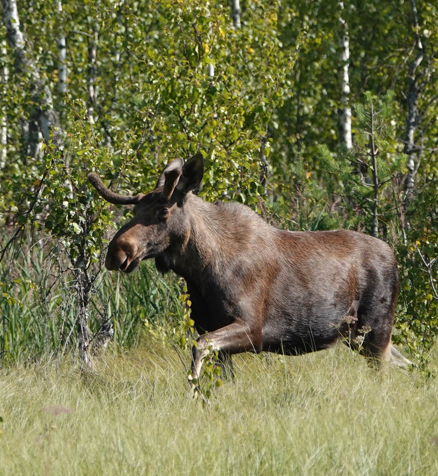 Необычную встречу с молодым двухлетним лосем во время полевых исследований на болоте описалa научный сотрудник Татьяна Ивановна Олигер. Лось с рогами в бархате сначала отдыхал в воде, скрываясь среди высокой травы, но затем заметил незнакомый объект и начал активное изучение.