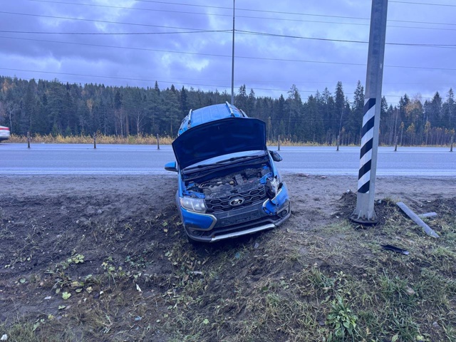 Как сообщили в официальном паблике сегодня, 27 октября, в 13:23 на 5 км автодороги «Подъезд к г. Петрозаводск» 51-летний водитель автомобиля Лада Ларгус, двигаясь со стороны Петрозаводска в сторону автодороги Р-21 «Кола», превысил скорость движения и не справился с управлением.