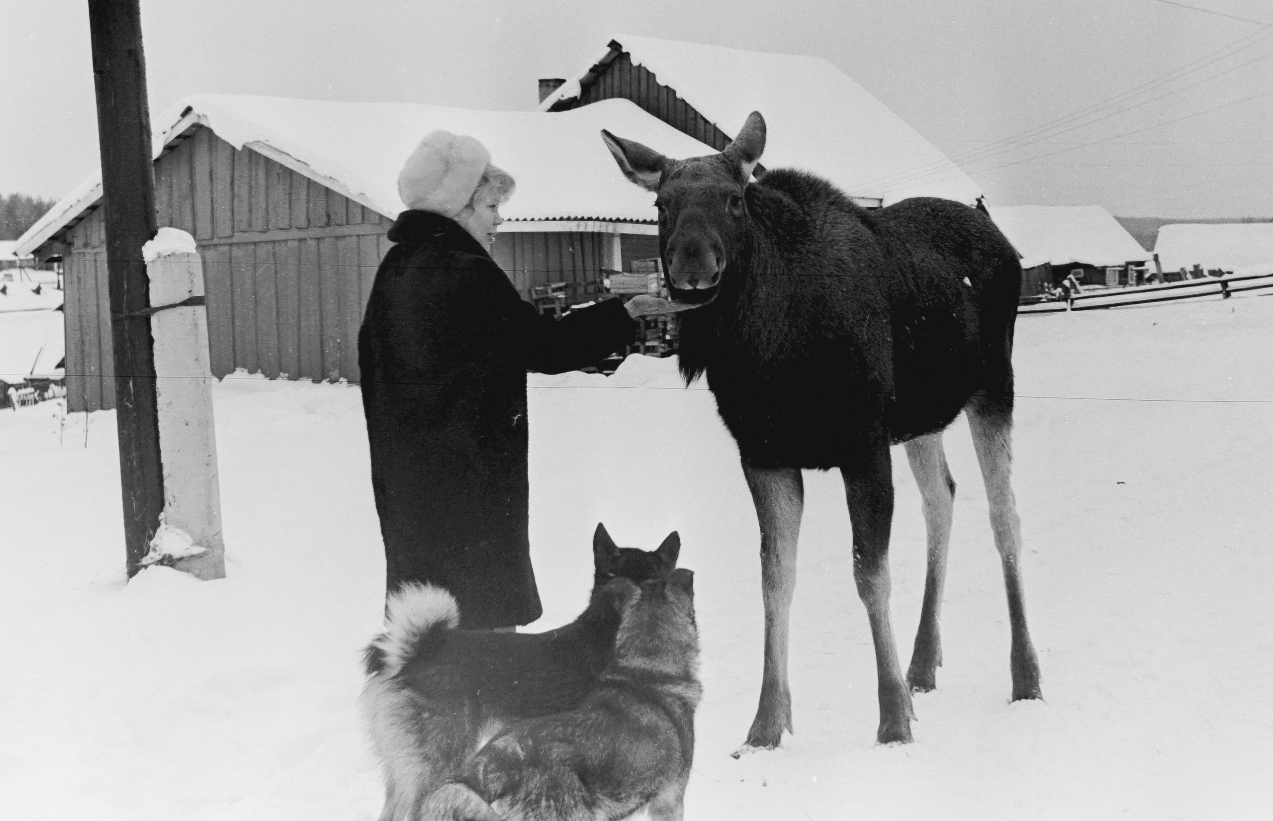 Черно-белые снимки сделаны в конце 1970-х годов известным журналистом. На опубликованых в сети фотографиях запечатлена молодая лосиха Зинка, которая несколько дней находилась в деревне Вороново.