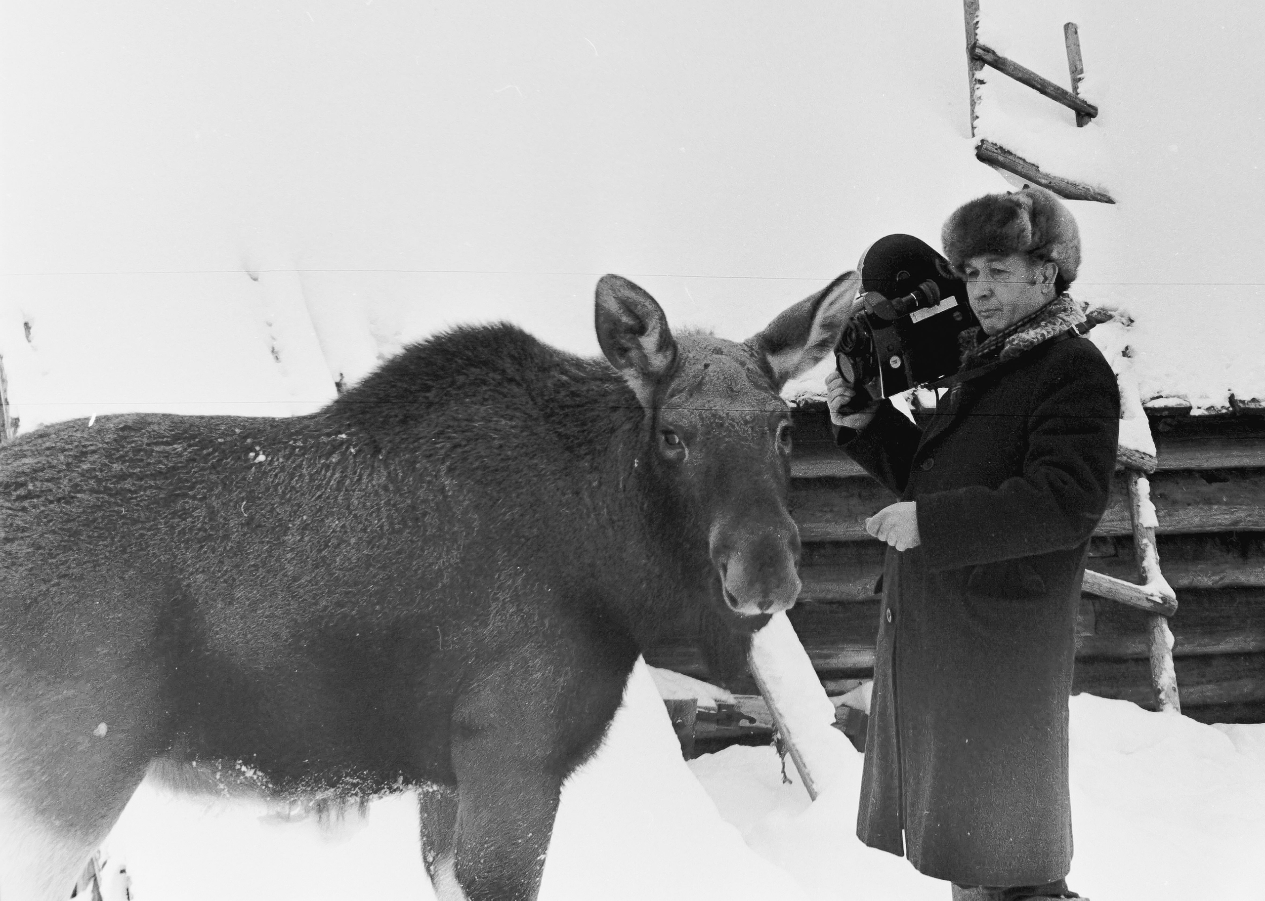 Животное не боялось людей, собак и техники. Карельское телевидение сделало несколько репортажей об этом уникальном случае. На кадрах также запечатлены журналист Галина Хоничева, кинооператор Геннадий Грошев и водитель Георгий Хорин.