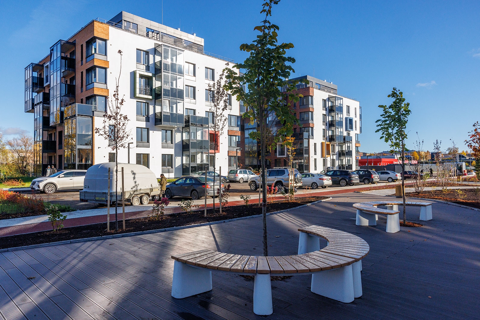 Фотограф также предложил компании «Охта Групп Карелия» развернуть столы по диагонали для удобства одновременной игры на нескольких площадках. Благоустроенная территория включает новые тропинки вдоль реки и дорожки, соединяющие микрорайон с другими частями города.
