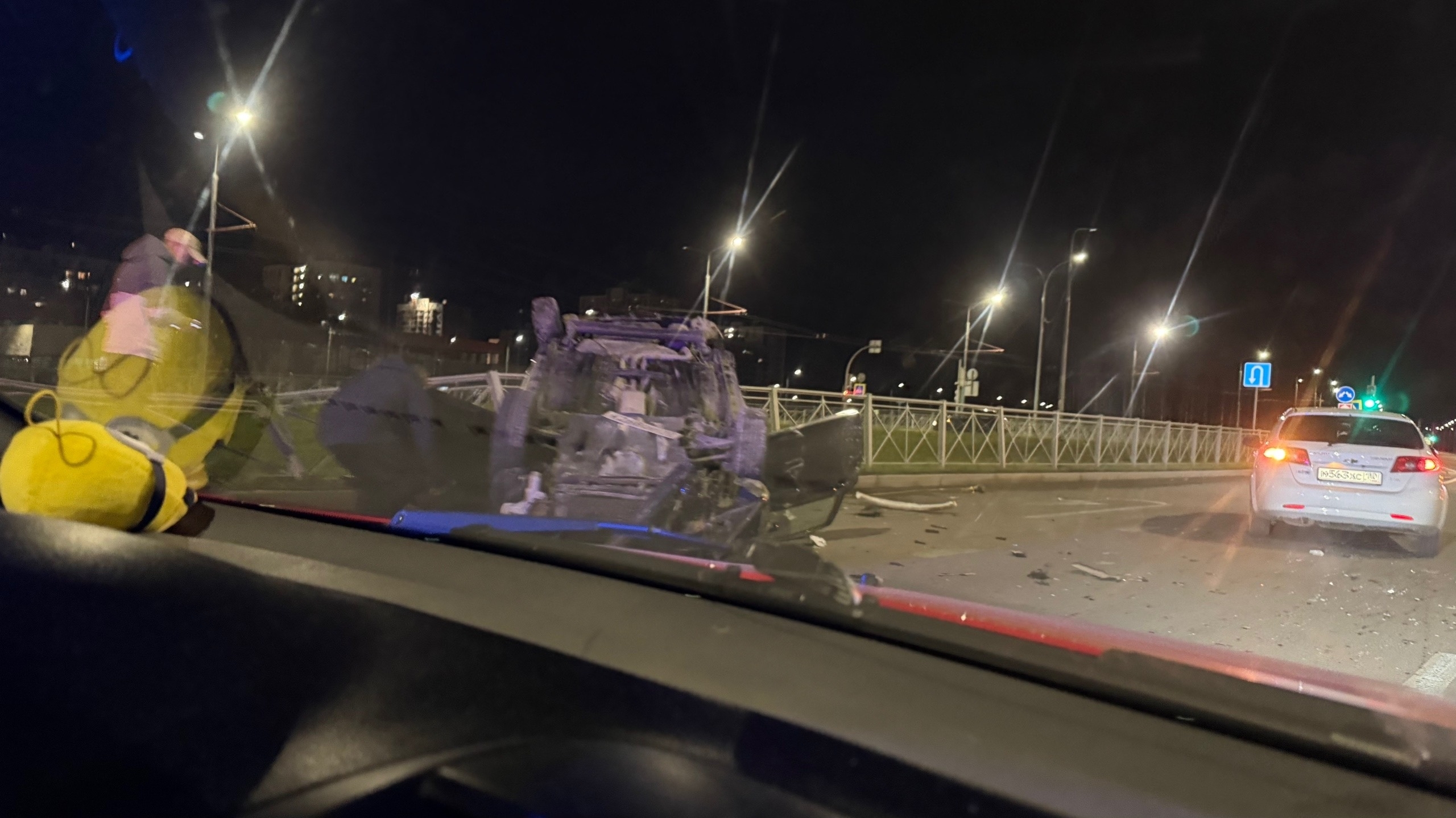 Судя по фото, один автомобиль перевернулся и лежит на крыше.