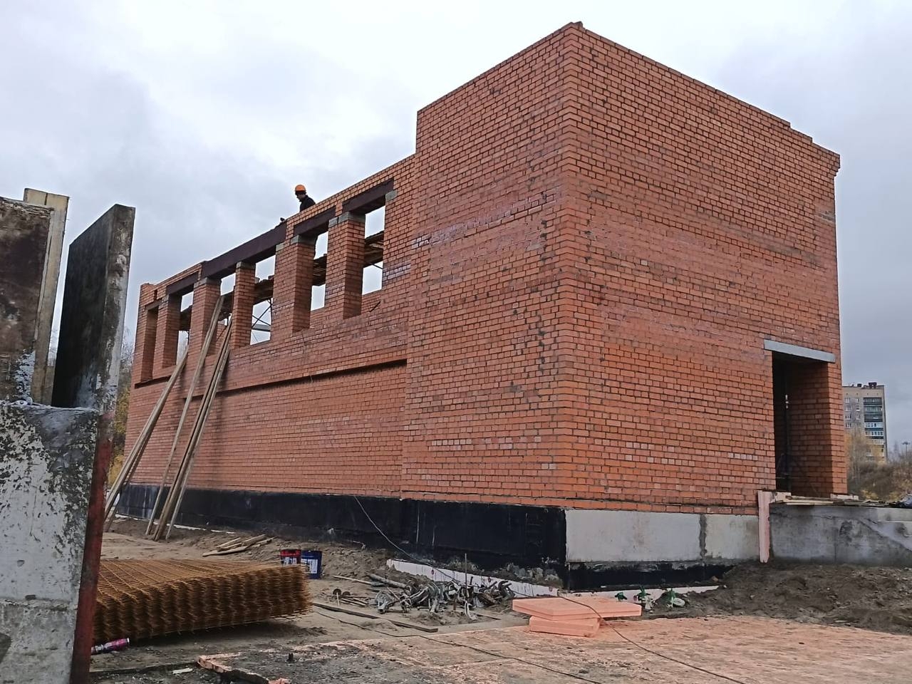 Сейчас на объекте завершены работы по устройству фундаментов здания спортивно-хозяйственного корпуса, бетонированию стен цокольного этажа, пола и перекрытия над первым этажом.