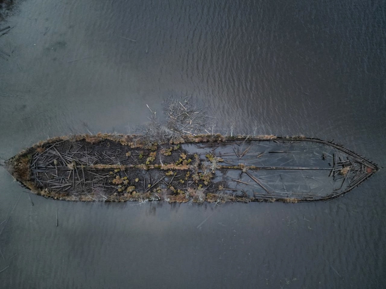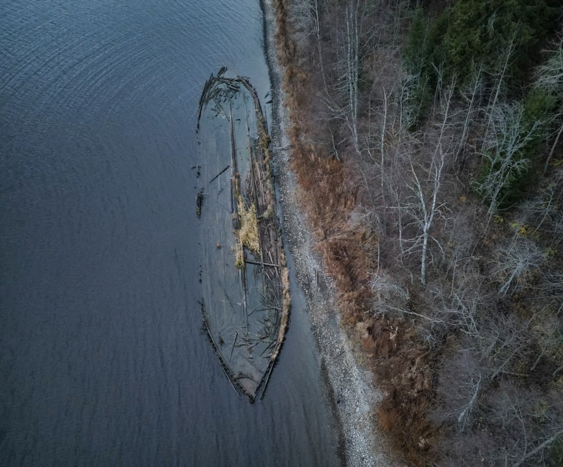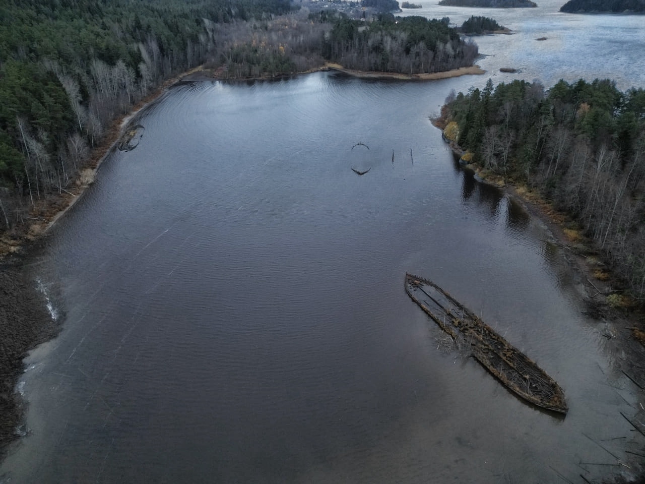 Озеро Янисйоки в Питкярантском округе, впадающее в Ладогу, сильно обмелело. На поверхности появились старые затонувшие корабли. Фотографии опубликовали в паблике
