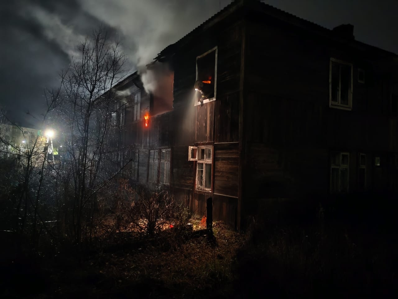 Пожар произошел вчера, 6 ноября, в нежилом и неэксплуатируемом 8-ми квартирном двухэтажном доме на ул. Октябрьская, 11 в Суоярви.