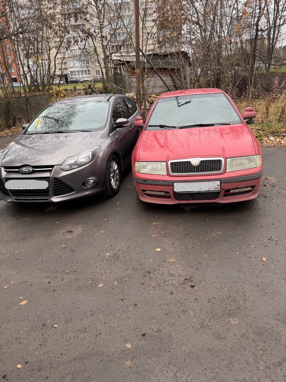 Как уточнили подписчики в комментариях, один легковой автомобиль подпер другой у дома № 4А на ул. Ровио: красное авто подперло темное. Причем, на кадрах видно, что на темном автомобиле установлен знак «инвалид».