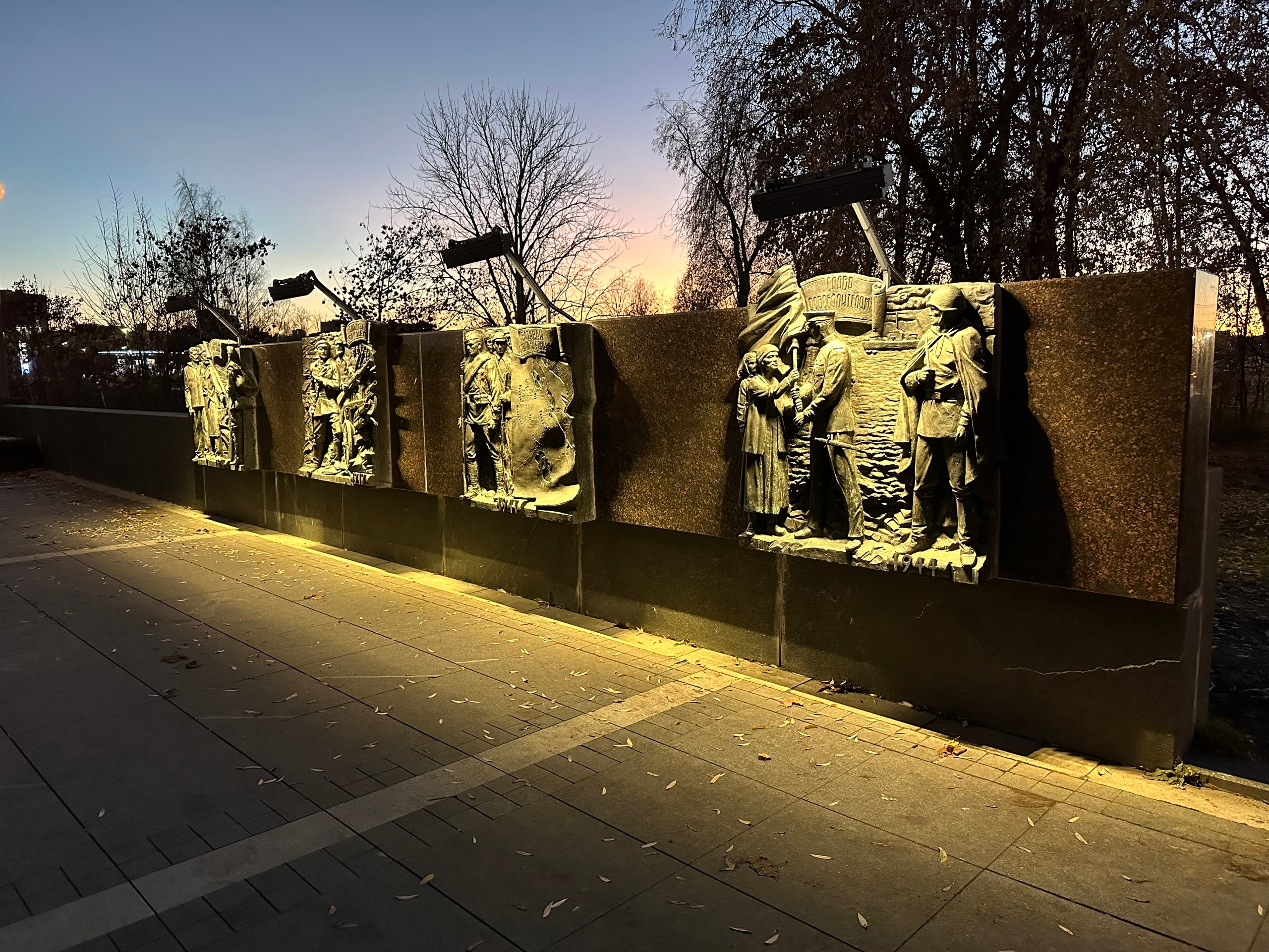 «Стела «Город воинской славы» обрела акцентную подсветку и стала выглядеть еще величественнее! Теперь каждый из восьми барельефов подсвечивает полуметровый линейный светильник», — написала Инна Колыхматова.
