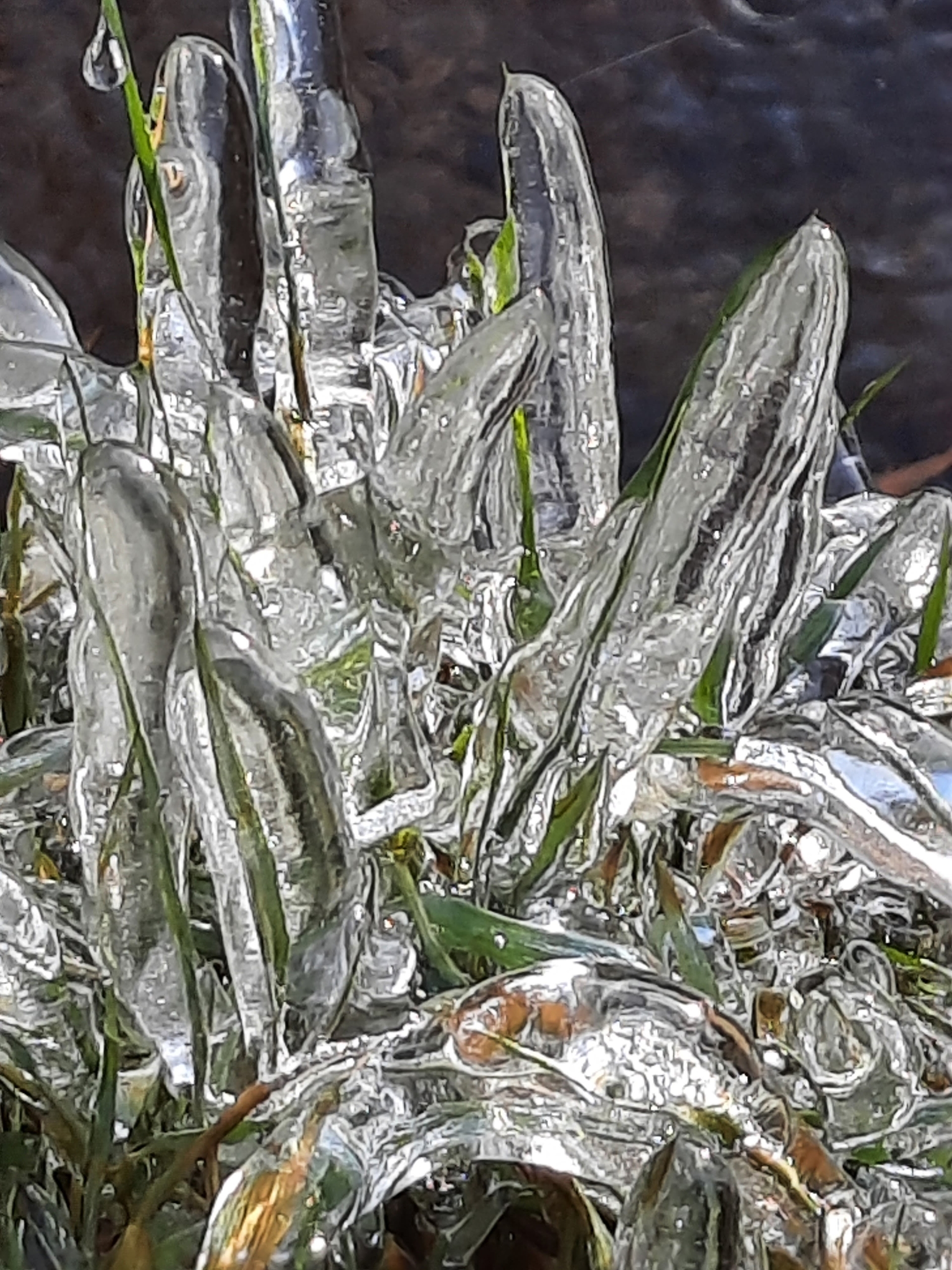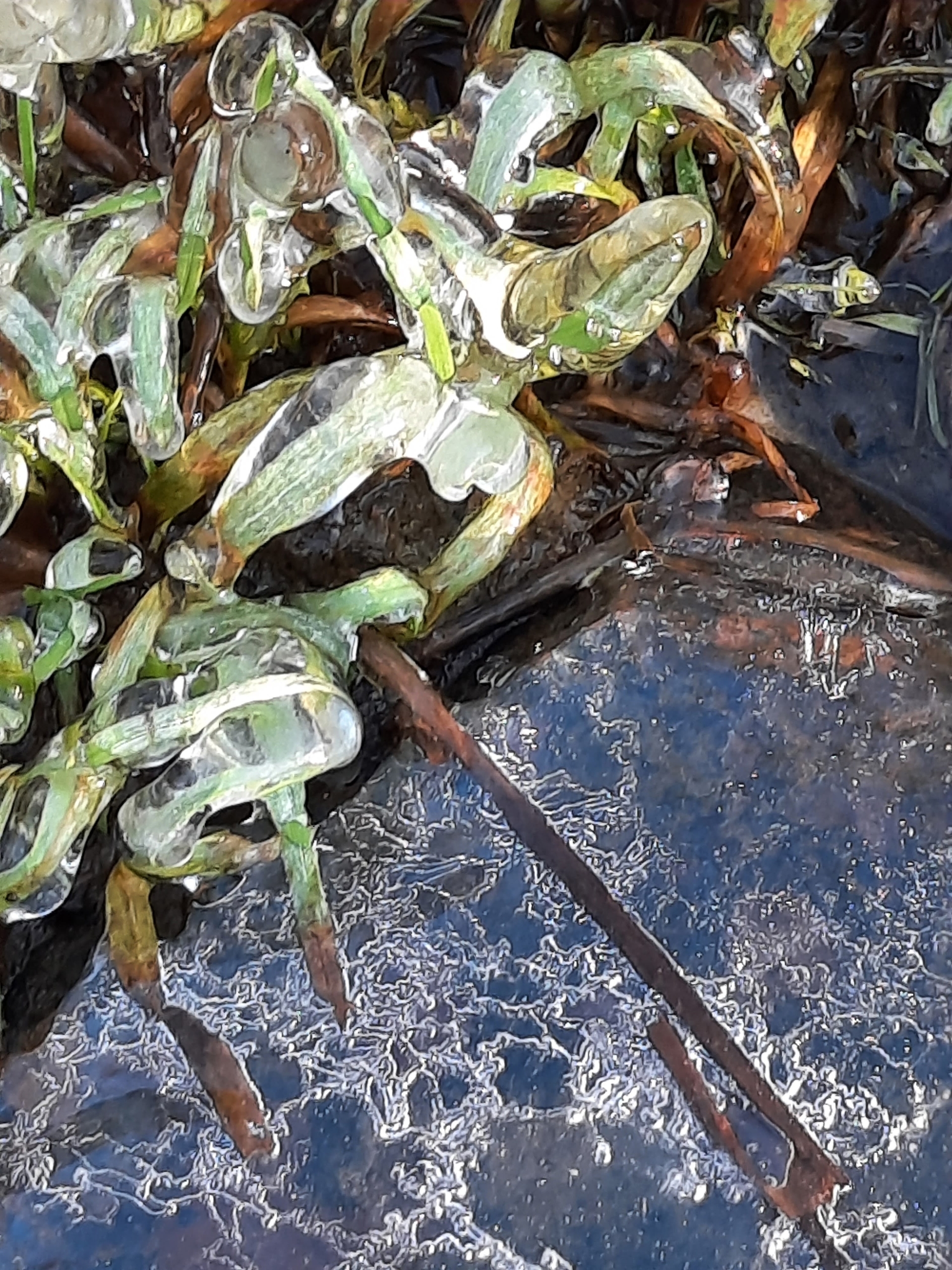 Лед прочно сковал растения, которые продолжали жить в аномально теплую осень. Морозы предупреждают о скором наступлении настоящей карельской зимы со снегом.