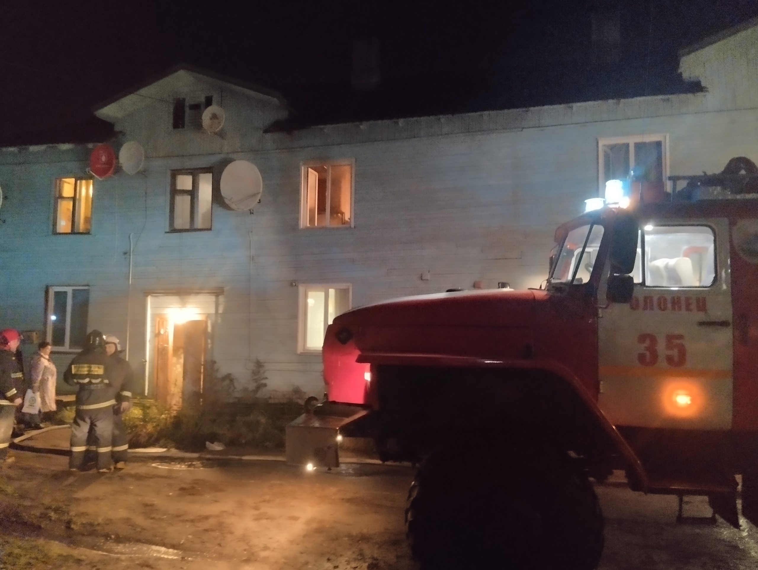Сегодня, 12 ноября, в 17.49 на пульт единой службы спасения поступило сообщение о пожаре в двухэтажном деревянном доме № 14 на ул. Карла Маркса в Олонце. Там загорелась квартира.