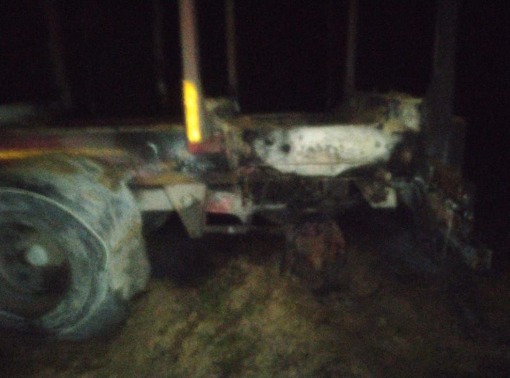 Вчера, 12 ноября, поздно вечером у поселка Черная речка в Олонецком районе загорелось колесо на прицепе лесовоза.