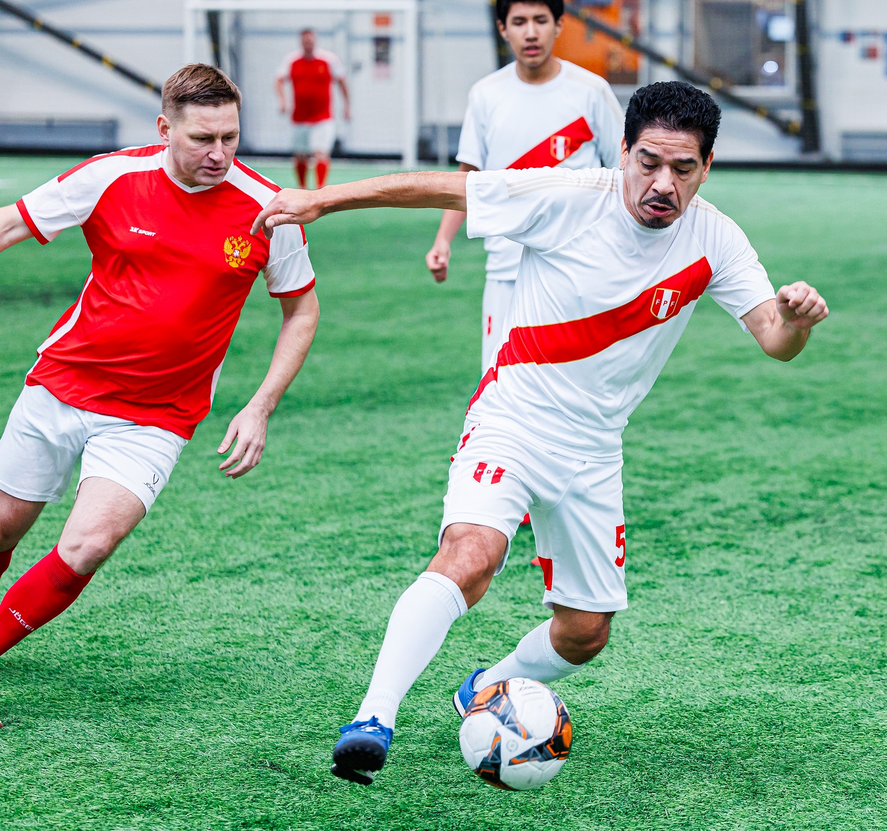Соперник российской команды был не менее колоритен. На поле вышла сборная Перу в миниатюре, состоящая из граждан этой страны, которых в Россию привели самые разные жизненные пути. Здесь были и студенты, обучающиеся в российских университетах, и профессионалы, строящие здесь карьеру. Особый статус матчу придало участие в игре сотрудников Посольства Республики Перу в России.