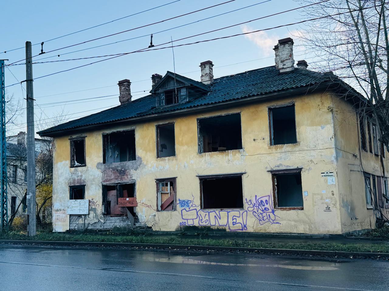 И еще один многострадальный расселенный дом, который горел уже несколько раз, стоит на улице Державина, напротив Державинского лицея, который считается в городе одним из престижных учебных заведений. Мимо трущобы каждый день ходят дети, рядом стоит общежитие бывшего Беломорско-Онежского пароходства и жилые дома, в которых также живут дети. Когда снесут этот дом, тоже непонятно, однако вечерами в этом месте ходить жутко.