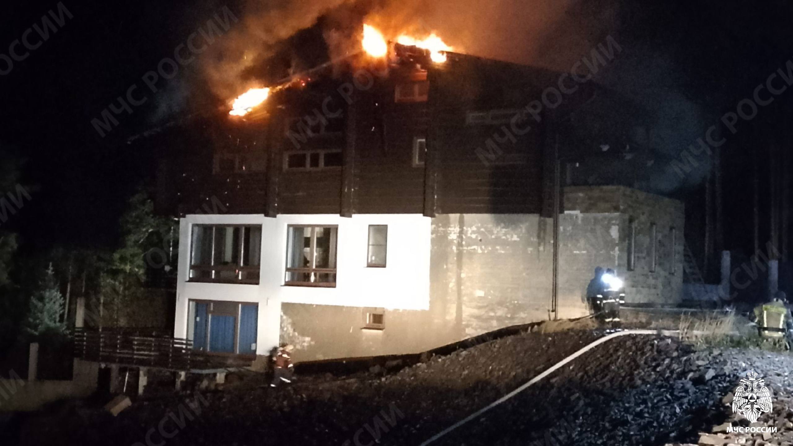 Первый пожар произошел ранним утром в поселке Карельская Деревня. В частном доме огонь повредил помещения третьего этажа и кровлю. На тушение направили 5 единиц техники и 20 человек.