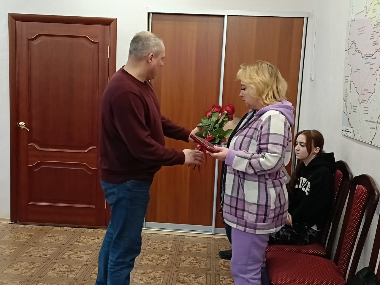 Глава администрации Пряжинского района Дмитрий Буевич и военный комиссар Евгений Петров вручили Орден Мужества Ольге Романовой. Ее супруг, мобилизованный Евгений Романов, был награжден посмертно за храбрость и верность Родине.