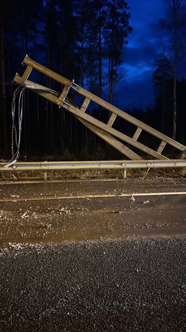 В соцсетях утром 16 ноября публикуют фото последствий ДТП с грузовиком-тонаром на трассе А-121 «Сортавала». По предварительным данным, шофер двигался с поднятым кузовом самосвала, он задел металлическую рамку. На таких обычно устанавливают камеры фиксации нарушений, оборудование системы «Платон», табло с информацией о дорожных работах и ограничениях скоростного режима.