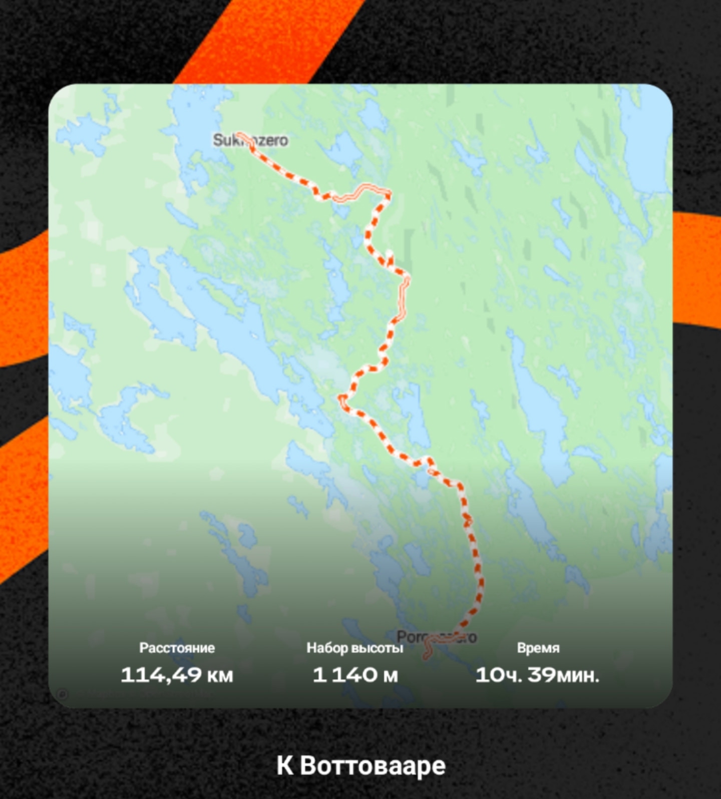 Путешествие началось со станции Суккозеро, куда турист прибыл на поезде из Санкт-Петербурга. После дневного перехода под дождем он достиг подножия Воттоваары, где оставил велосипед и поднялся к вершине. Из-за плохой видимости и тумана обзор с горы был ограничен. После ночевки в палатке турист добрался до поселка Поросозеро, откуда вернулся на поезде в Санкт-Петербург.