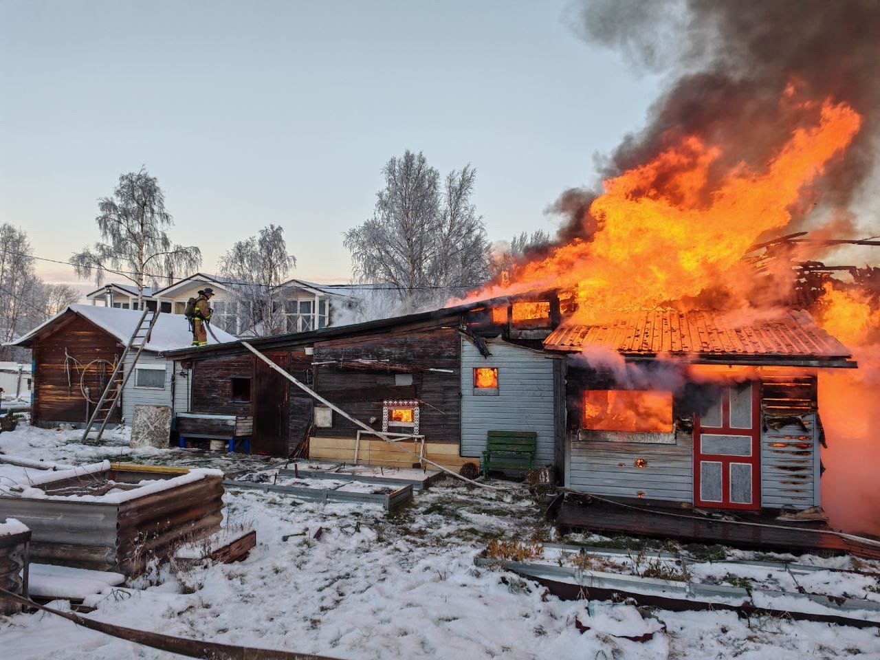 Пожар произошел утром сегодня, 19 ноября, в Кеми. Там на улице Вицупа загорелся жилой дом размерами 5 x 20 метров.