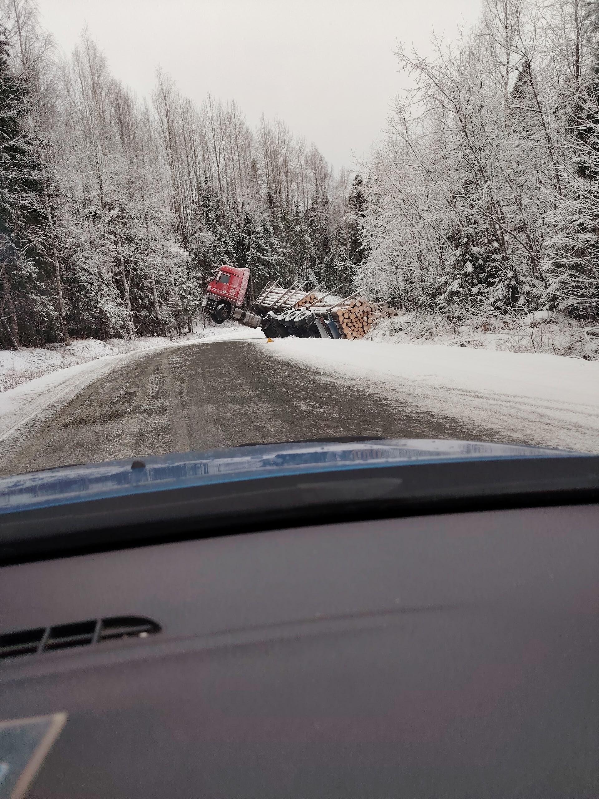 Как сообщили очевидцы, ссылаясь на водителя лесовоза, такая ситуация на дороге — с пяти утра .