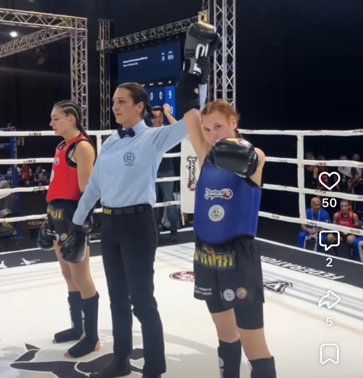 Серафима Костякова первой вышла на ринг и провела уверенный поединок с соперницей из Португалии.