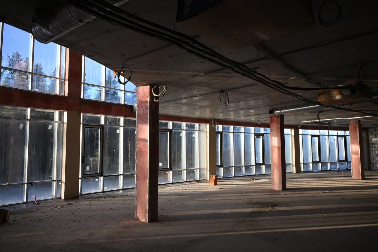 Строительные работы находятся на завершающей стадии. Уже закончено благоустройство территории: сделаны тротуары, спортивные площадки и озеленение. Здание подключено к теплосетям, что позволяет продолжать внутреннюю отделку зимой. Глава Карелии постоянно мониторит ход строительства.