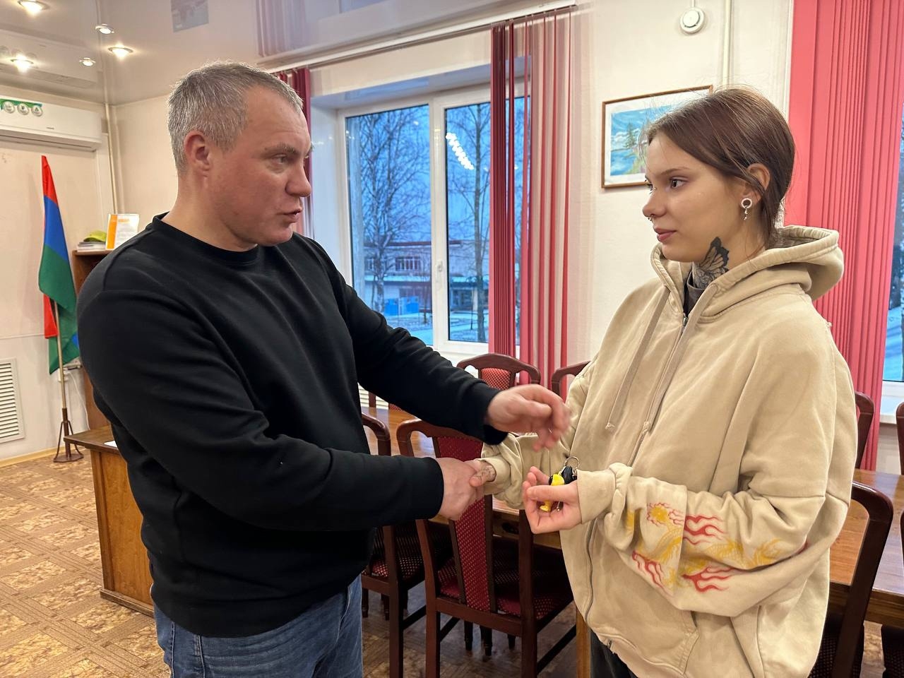 Администрация Пряжинского района сообщает, что глава администрации Дмитрий Буевич вручил ключи от новой квартиры жительнице района Анастасии Сергеевой. Девушка относится к категории детей-сирот и детей, оставшихся без попечения родителей.