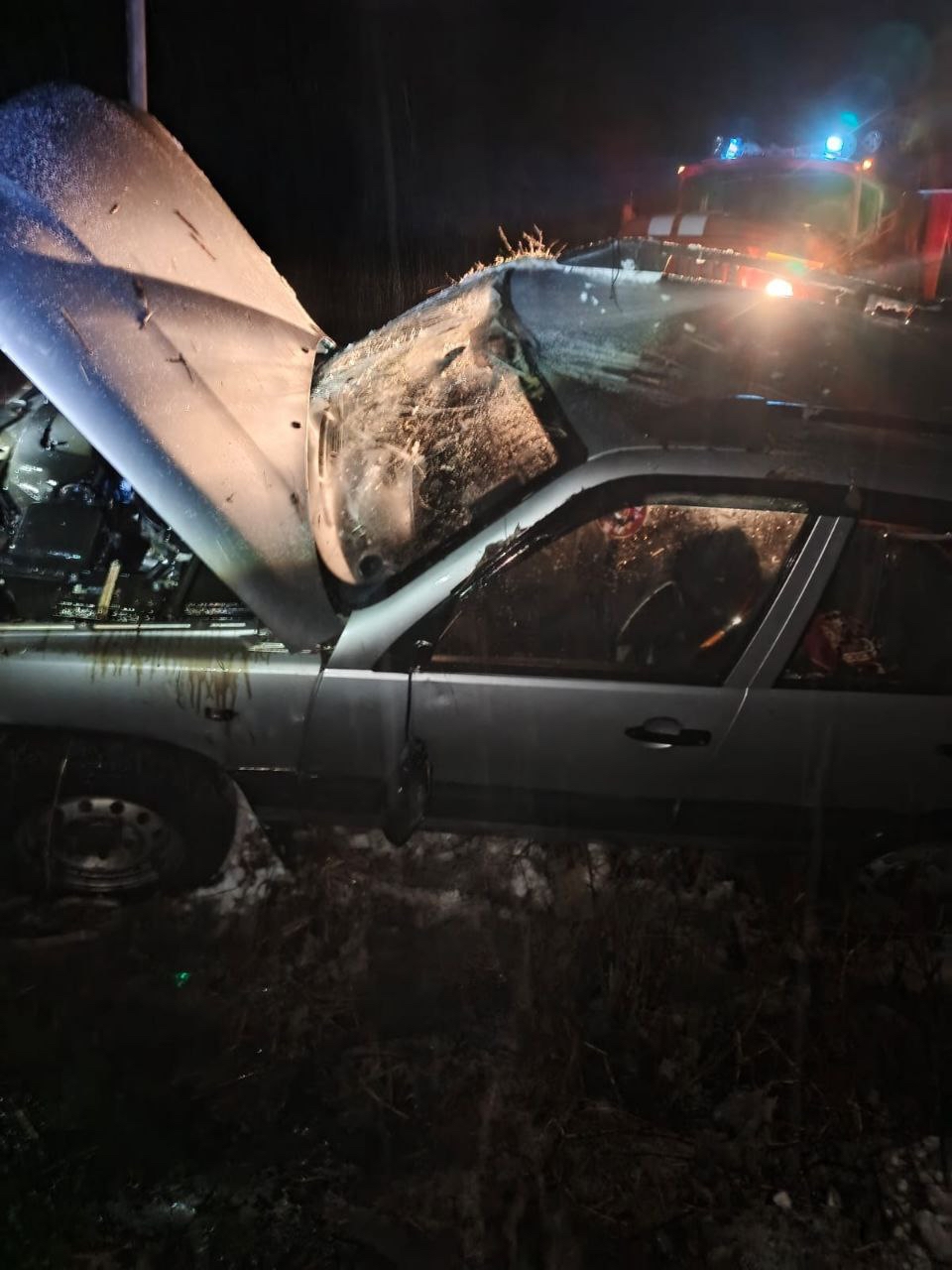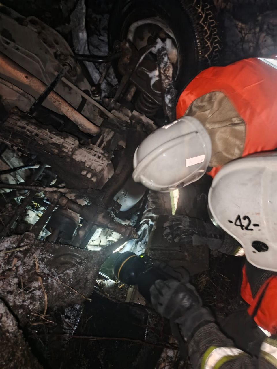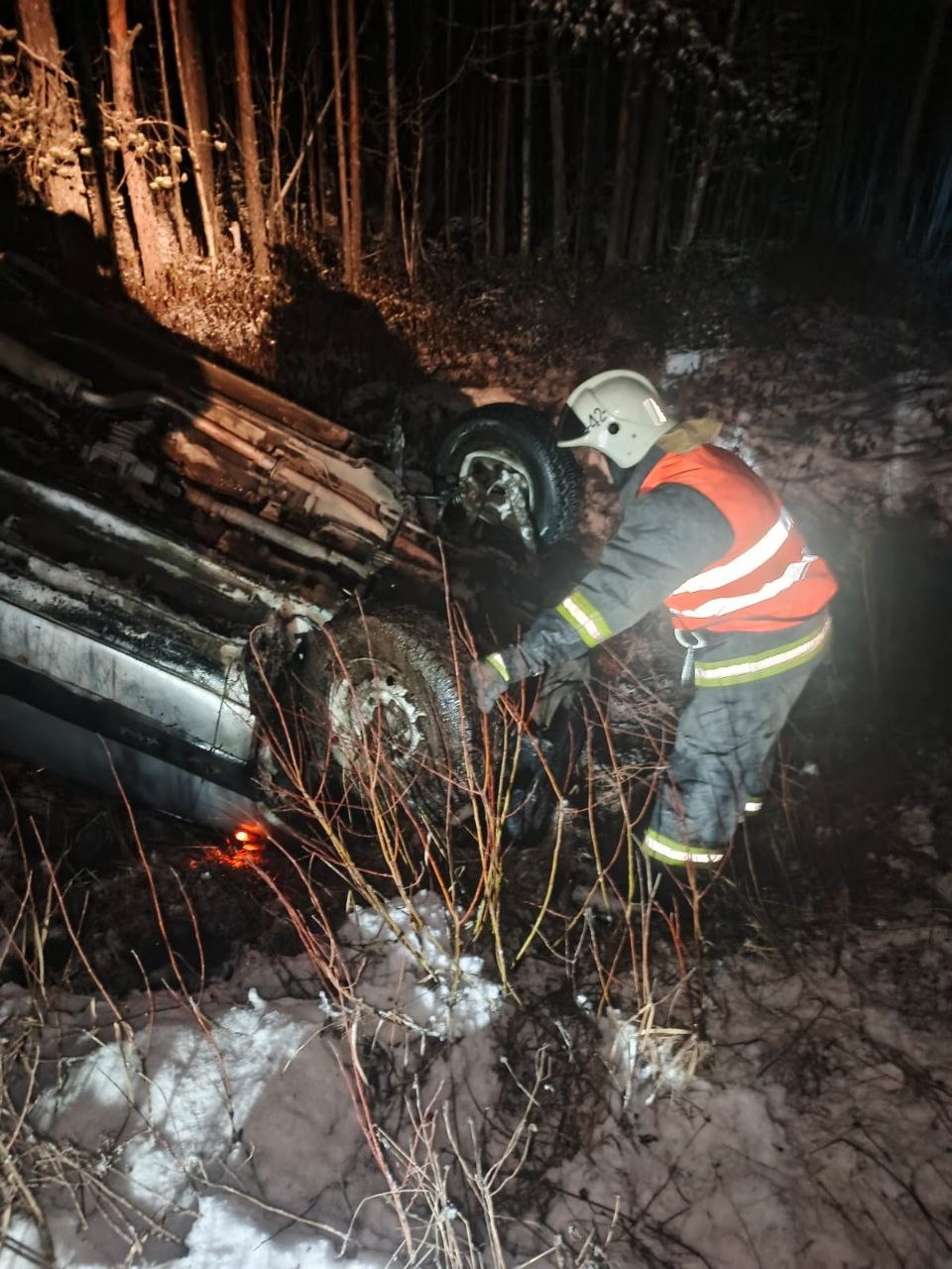 Прибывшие на место аварии пожарные отключили аккумулятор и стабилизировали автомобиль. Топливо не разлилось.