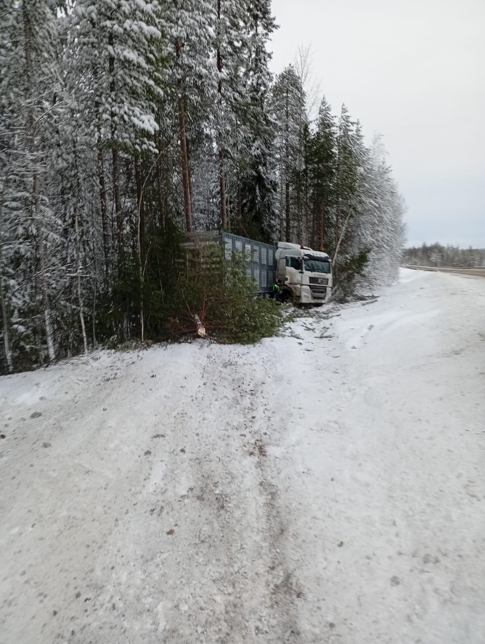 Авария произошла сегодня в 12:57 на 900 км трассы Р-21 «Кола» в Лоухском районе. Там фура «SITRAK» с прицепом съехала в кювет. Об этом сообщил Госкомитет Карелии по безопасности населения.