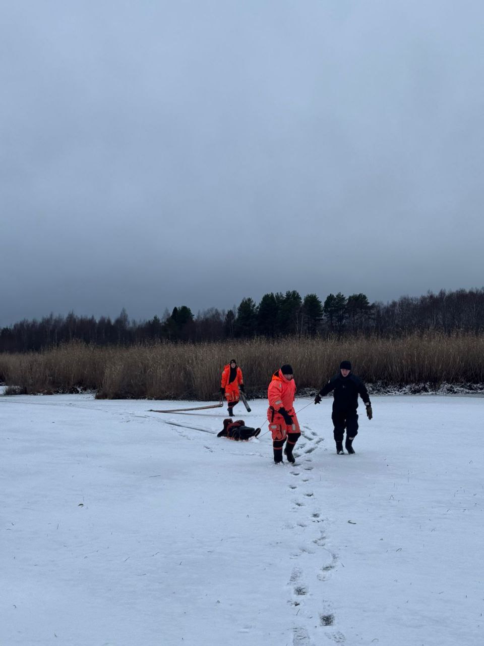 На место оперативно выехали сотрудники пожарной части и полиции города Кондопога. В ходе обследования береговой линии на помощь никто не звал, и недалеко от берега спасатели обнаружили майну, предположительное место, где под лед мог провалиться человек.