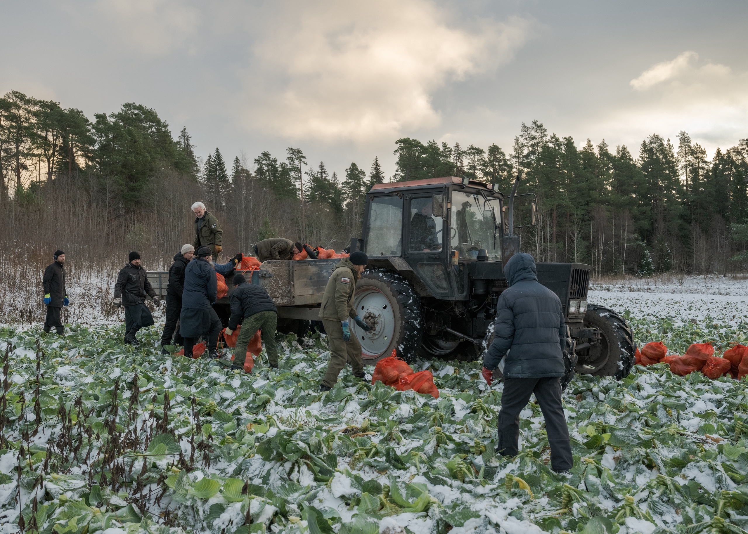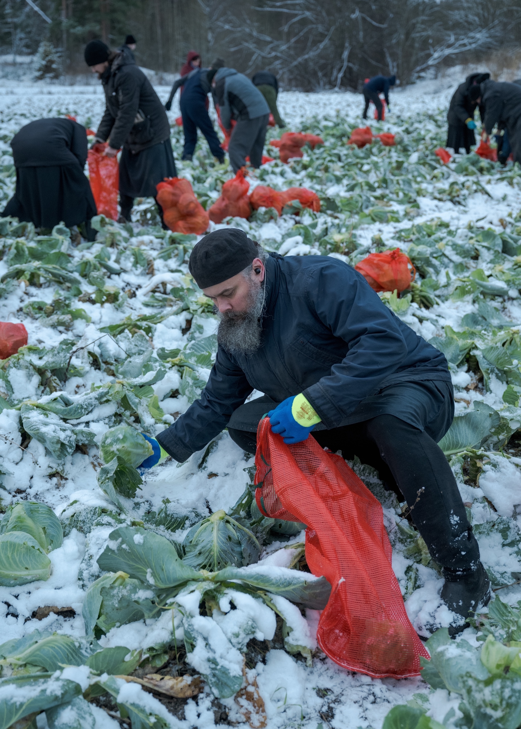 Засахаренную от мороза капусту убрали с полей монахи Валаамского монастыря в конце ноября. Коллективный труд на морозе объединил верующих и воодушевил на благое дело. Фотографии Дмитрия Гожий опубликовали в паблике монастыря.