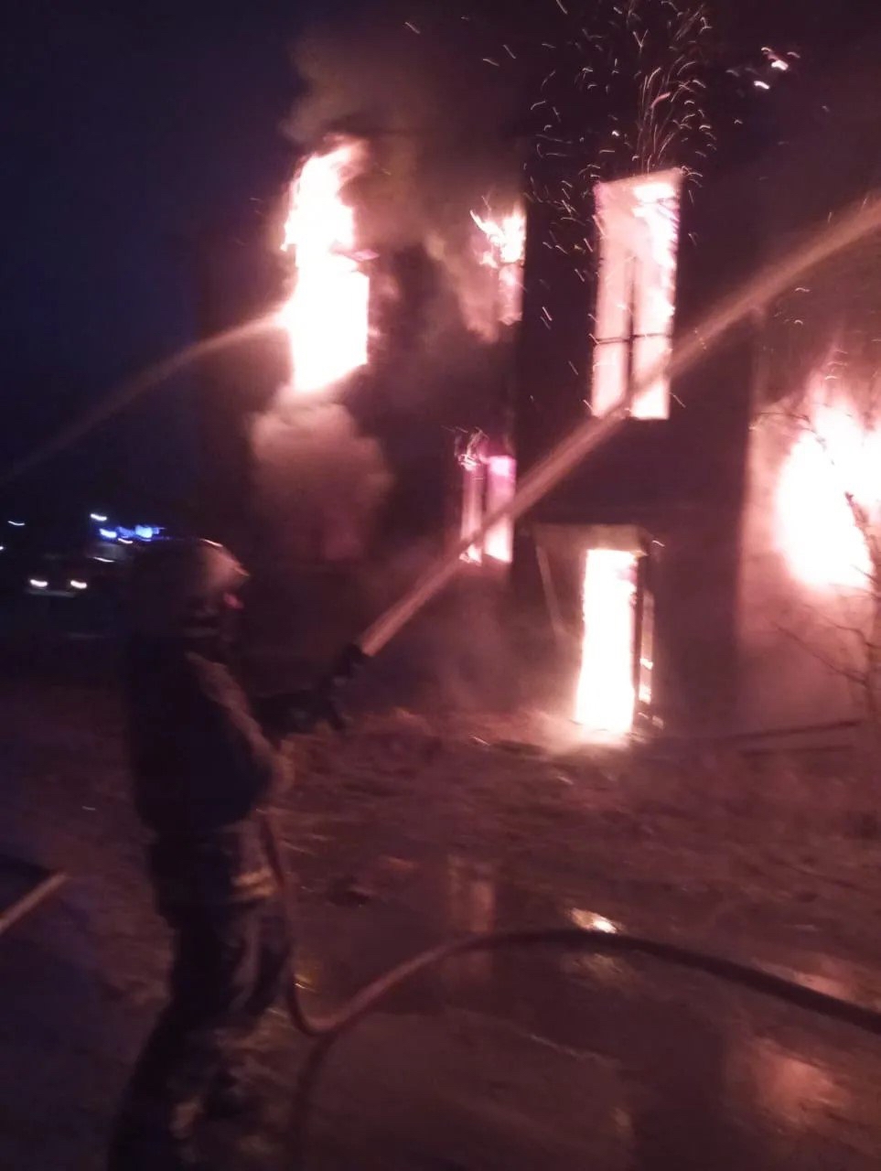 Дом полыхал вовсю, когда прибыли пожарные.