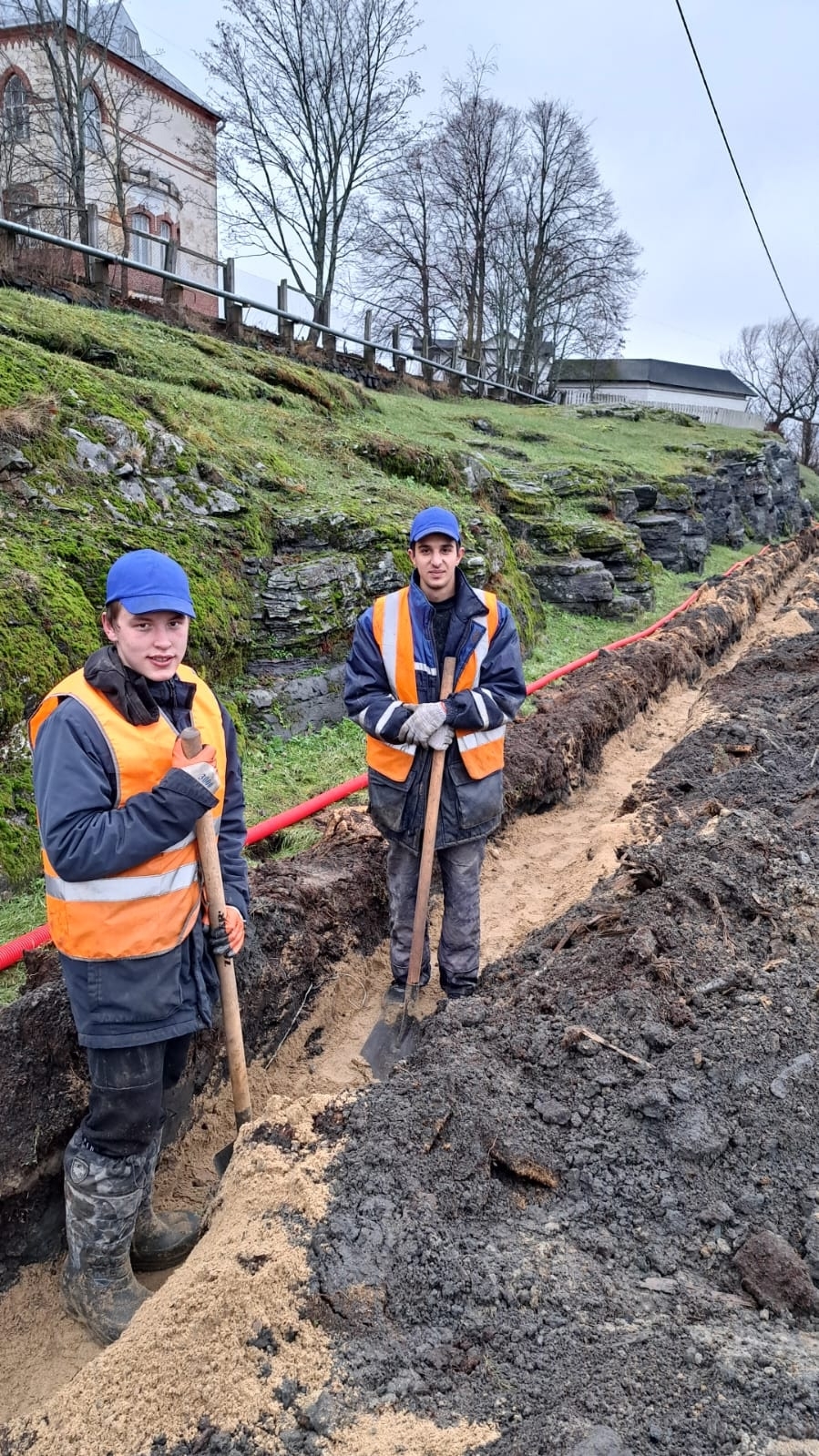 Работы выполняет бригада под руководством Антона Коенена. Контроль за ходом работ осуществляют директор Школы Олимпийского резерва Артемий Евсеев и депутат Вадим Лисовский.