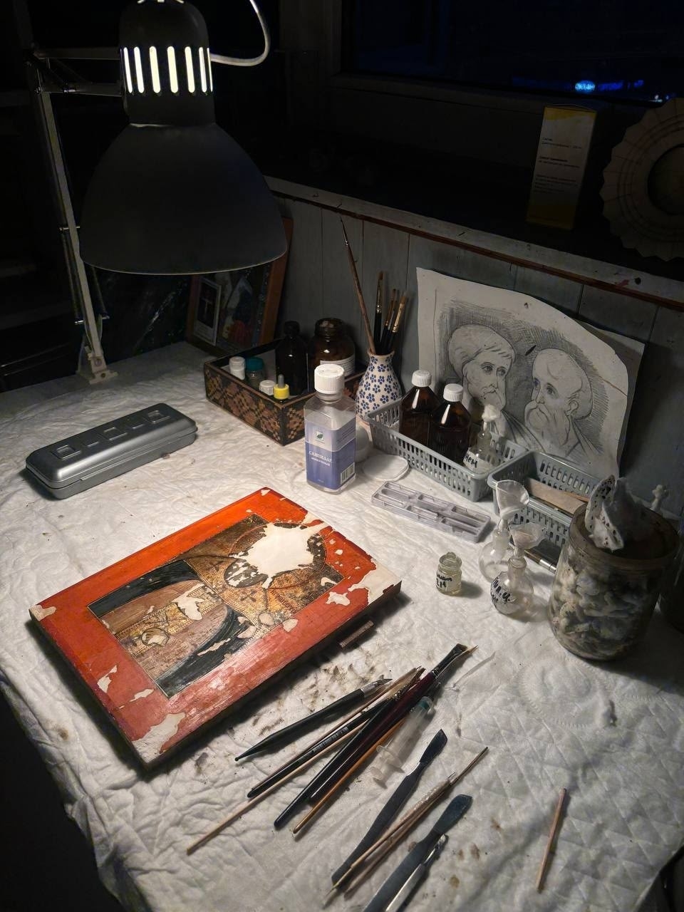 Монастырь, основанный в XVI веке, после закрытия в 1918 году столетие пребывал в запустении. С 2020 года, после передачи Церкви, здесь начались работы по консервации уцелевших сооружений. Реставрация икон представляет собой важный этап возрождения духовной жизни монастыря, который является историческим центром для вепсов. Возможность для работ появилась благодаря гранту «Богословие в красках».