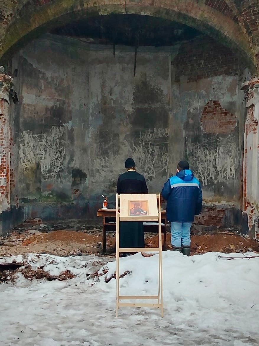 В Шелтозеро прошел первый молебен в руинах храма апостола Матфея. Об этом рассказали в местном сообществе. Несколько человек, не испугавшись стужи, собрались под открытым небом вместо утраченных куполов.