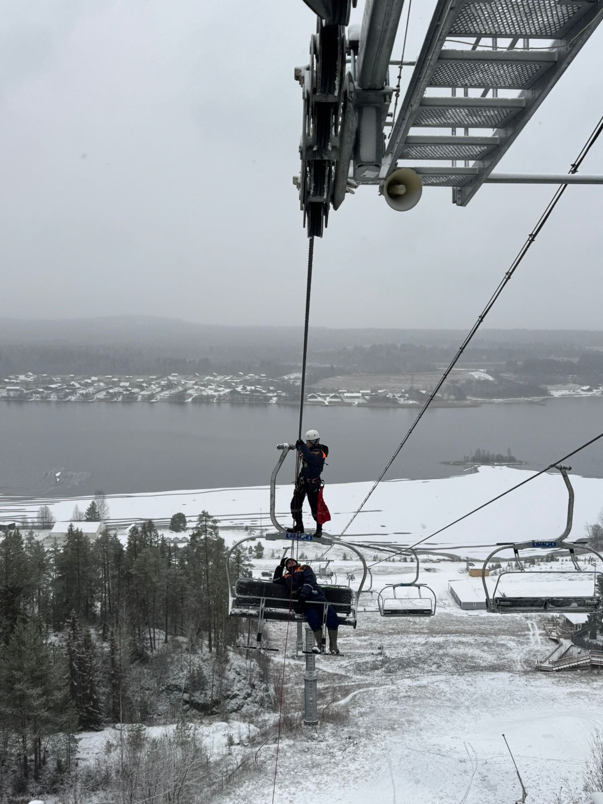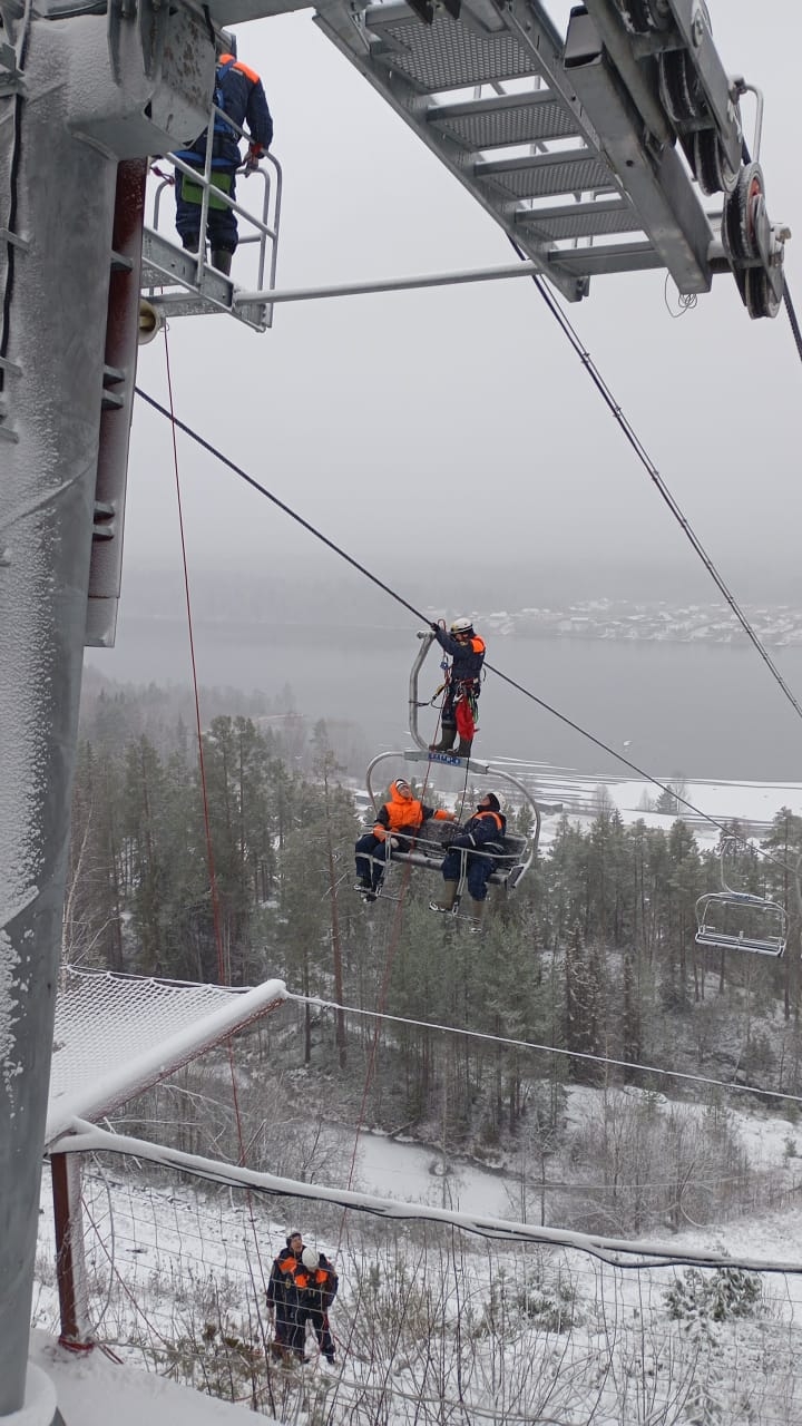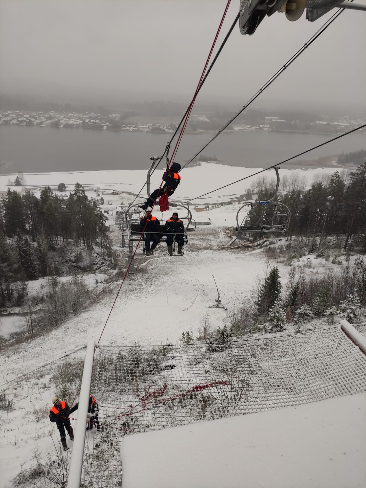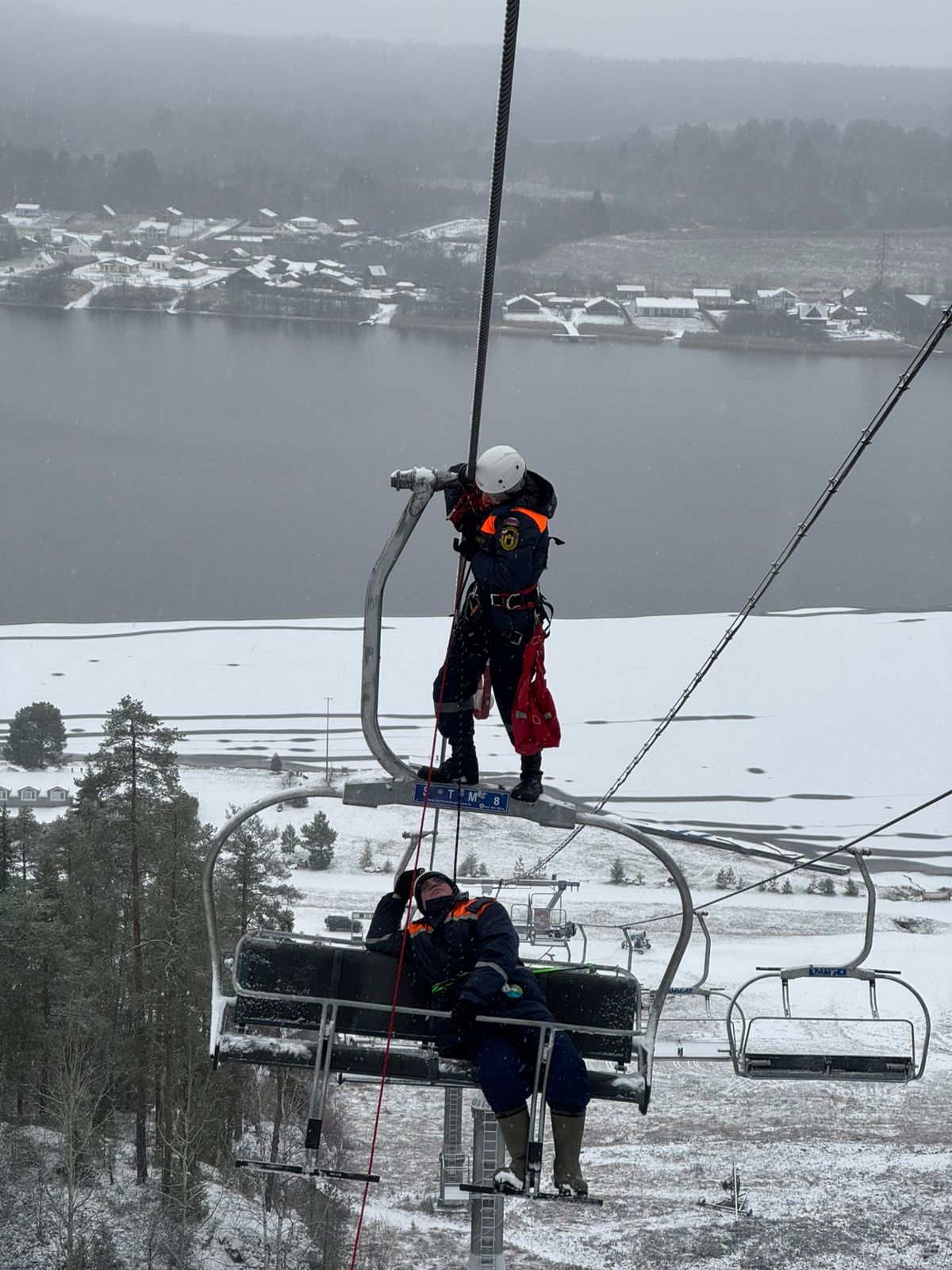 Карельская поисково-спасательная служба провела учения на канатной дороге горнолыжного курорта «Ялгора». Спасатели отрабатывали действия при возникновении чрезвычайной ситуации на подъемнике.