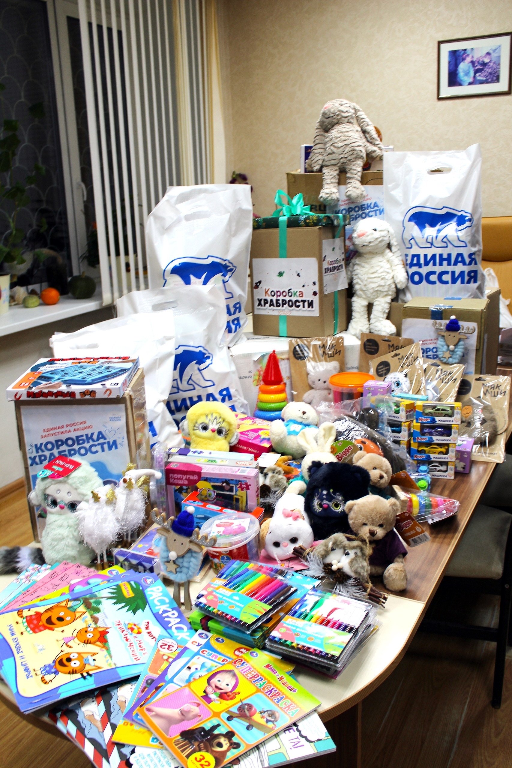 Они передали подарки маленьким пациентам, которые находятся на длительном лечении. Акция носит название «Коробка храбрости» и проводится партией «Единая Россия» по всей стране. Ее цель — поддержать детей, вынужденных проходить болезненные медицинские процедуры.