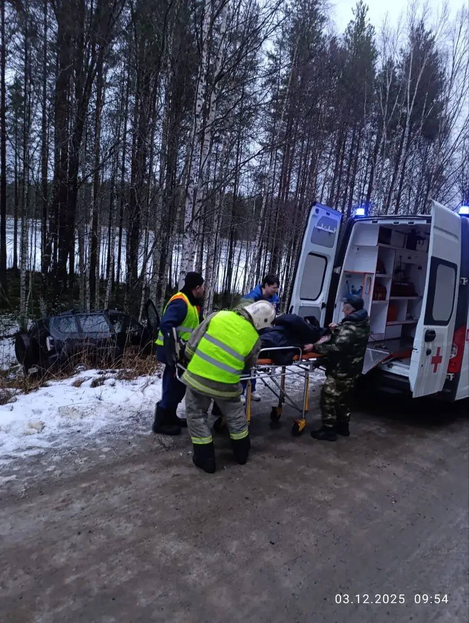 Пожарные отключили аккумулятор в автомобиле, вернули «Ниву» на дорогу и транспортировали пострадавшего до машины скорой помощи.