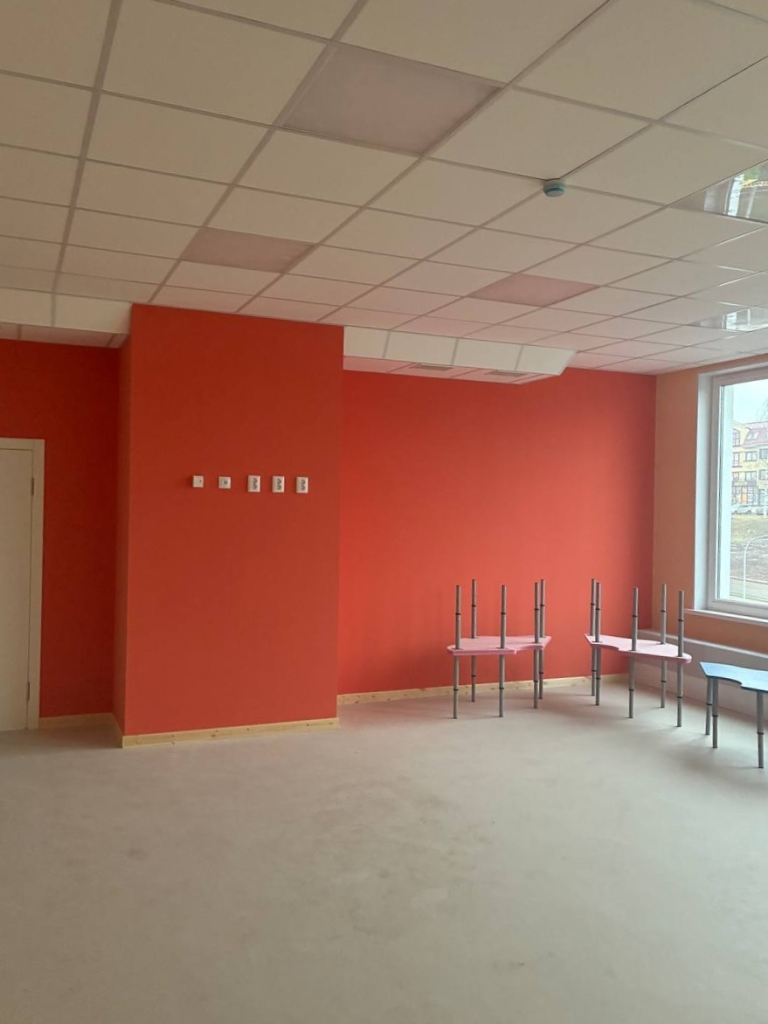 – В здании остается выполнить последние штрихи, еще идут электромонтажные работы, устройство воздуховодов в пищеблоке, пуско-наладочные работы лифта и слаботочных сетей, – сообщает Дирекция по строительству Республики Карелия. – Подрядчик проводит монтаж сантехники, собирает мебель и оборудование в пищеблоке, санузлах, детских группах и вспомогательных помещениях.