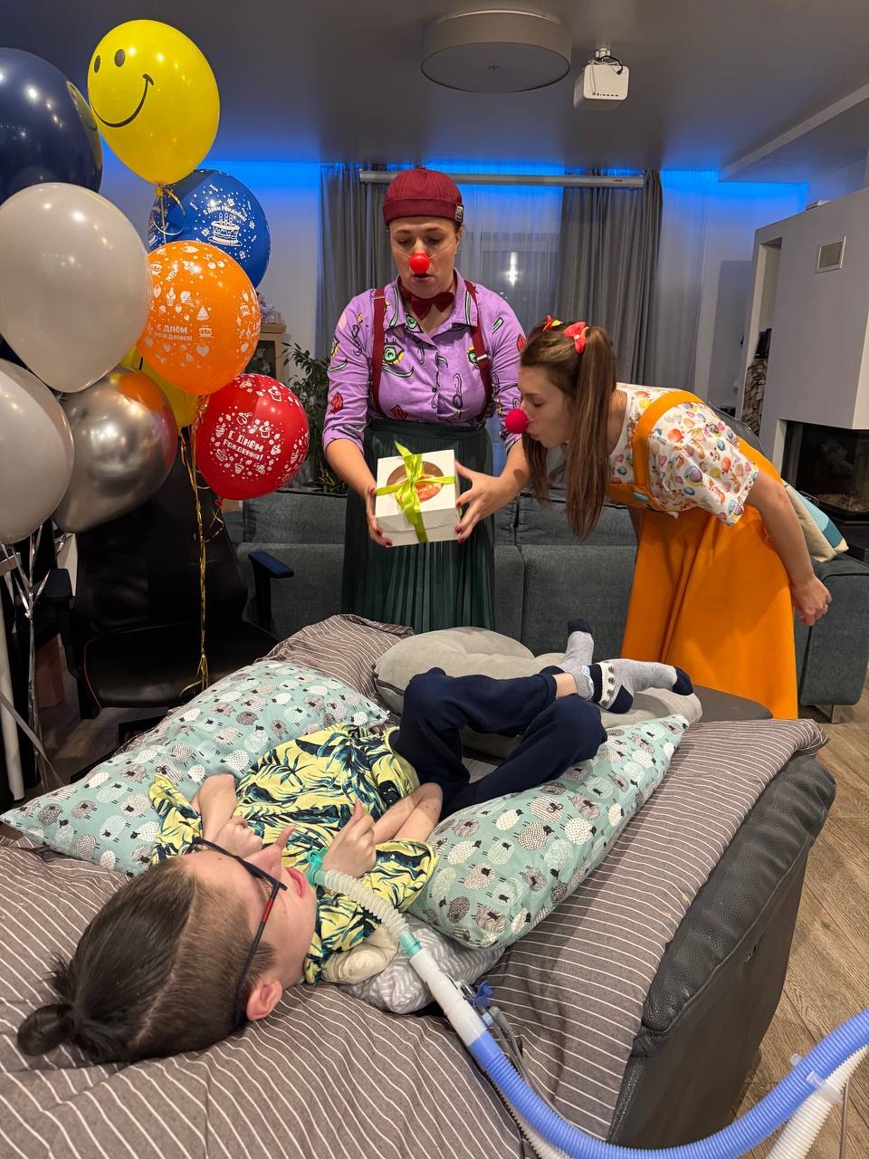 Клоуны также навестили детей с тяжёлыми заболеваниями на дому, Центр «Сова» для ребят с ограниченными возможностями здоровья и праздник для недоношенных детей в перинатальном центре.